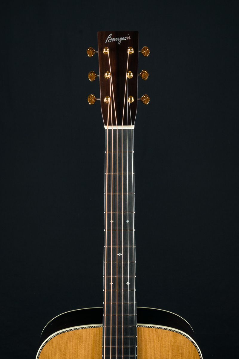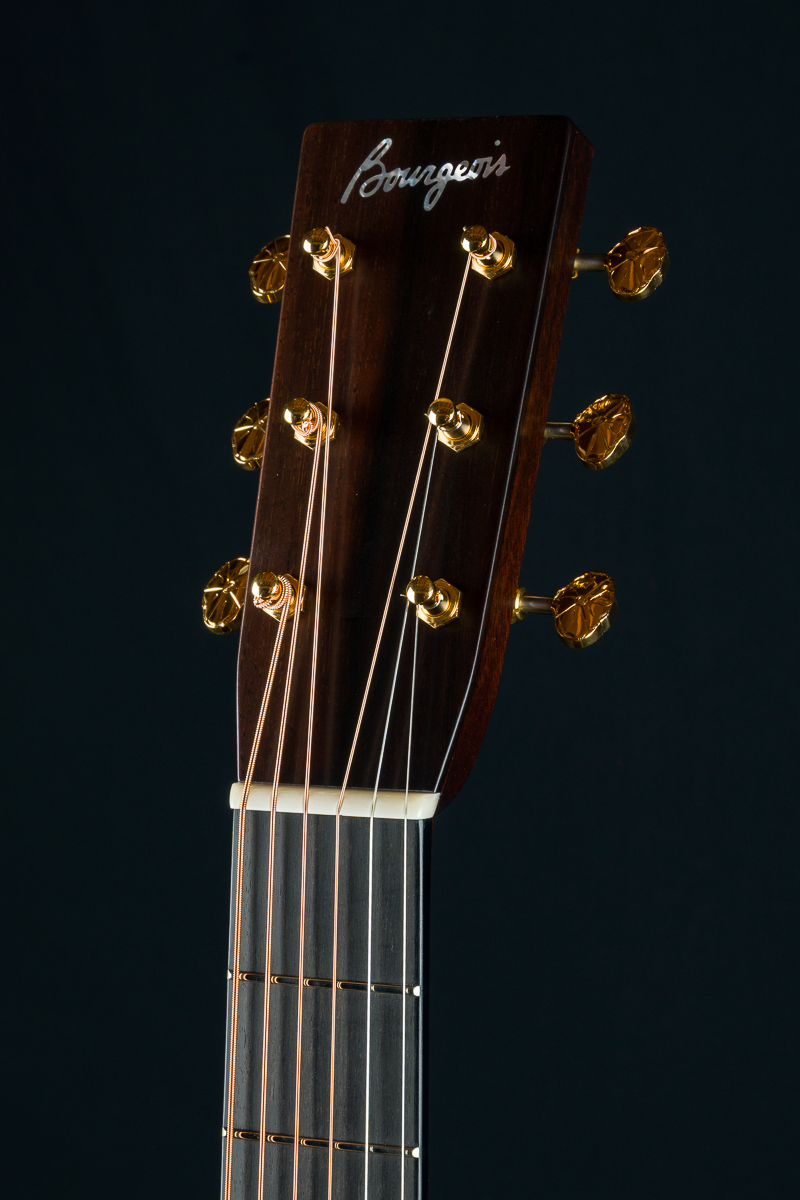 Other features include Waverly Gold Morning Glory Custom tuners, Ebony fretboard and bridge, Mahogany neck with volute, Abalone Pearl square and diamond inlays, Ivoroid heelcap and wedge, 1 3/4″ nut width, 2 5/16″ saddle spacing, Dana Bourgeois signature label and more. A great price for this boutique Limited Edition build.