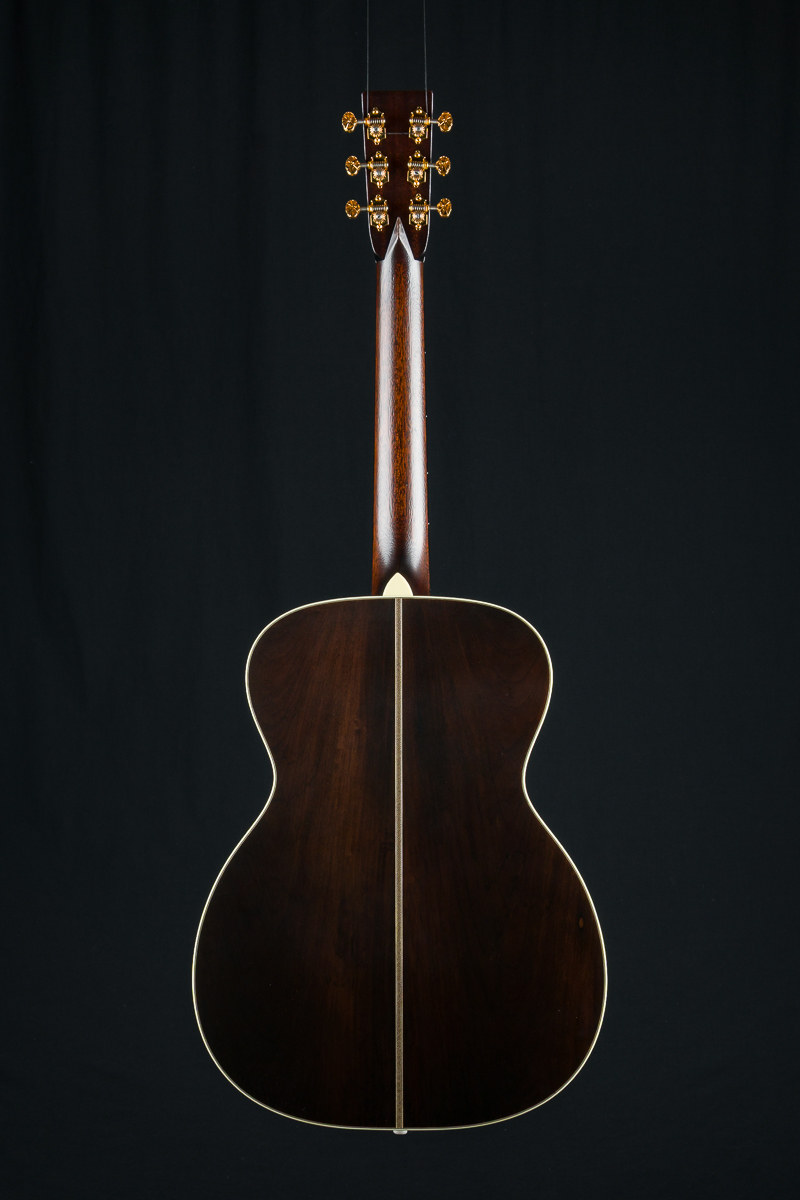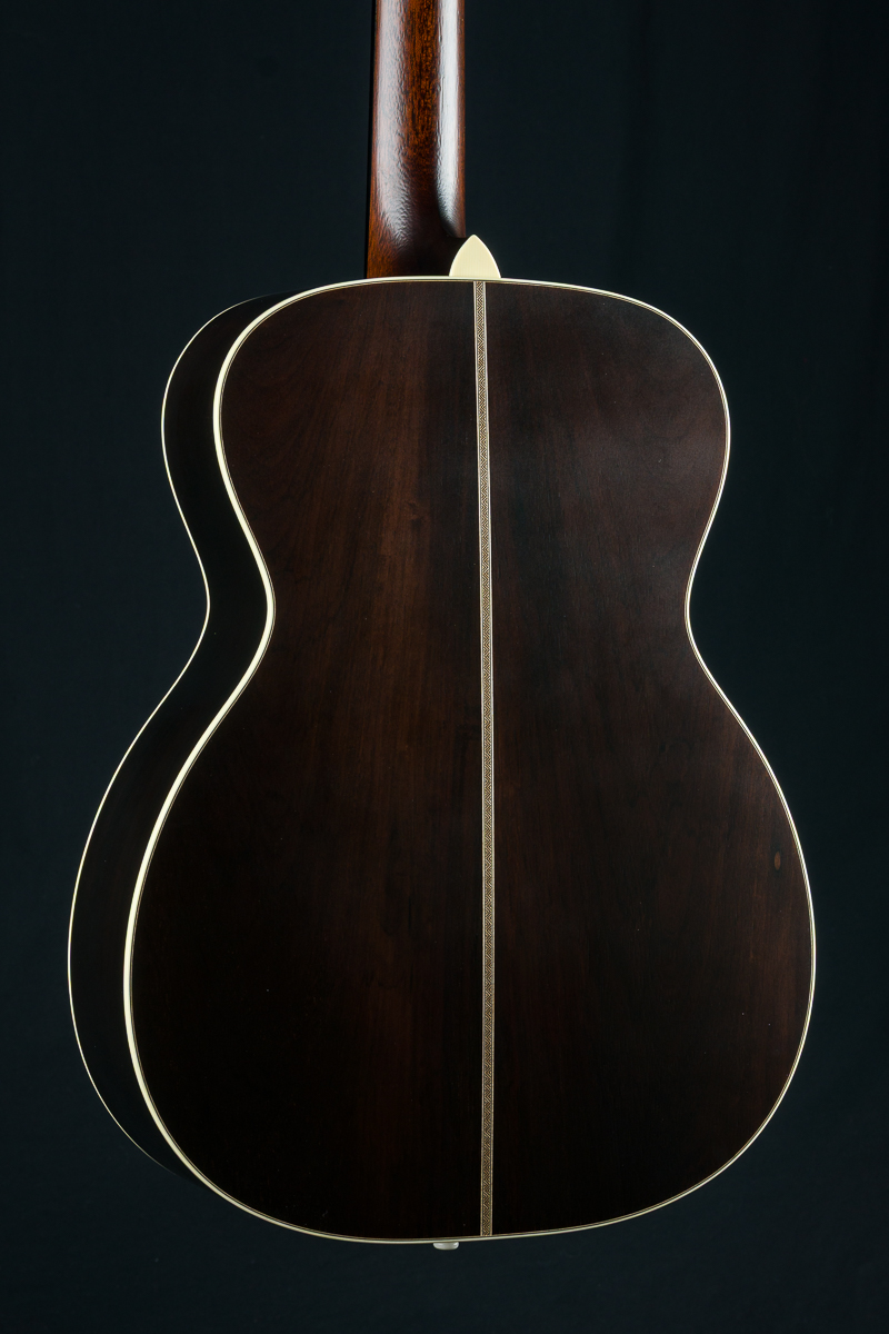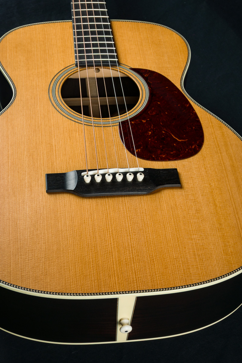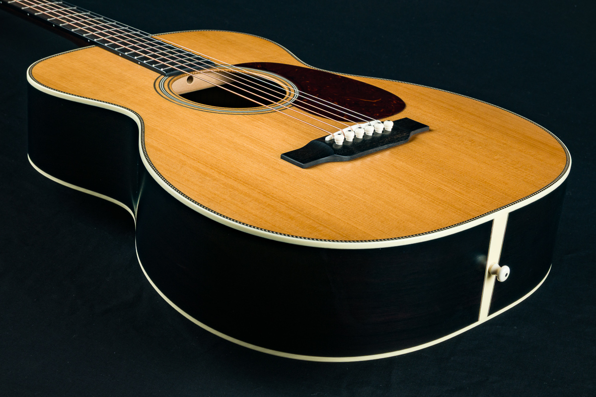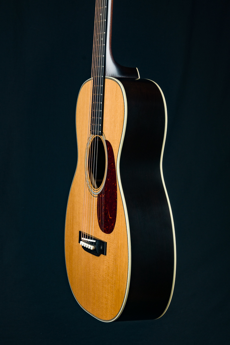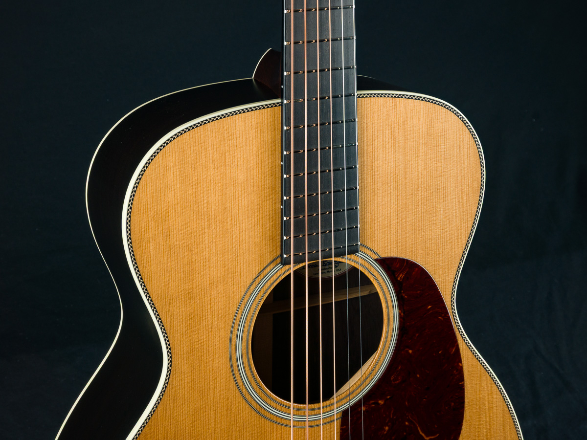 Providing extraordinary comfort through a short scale length and condensed total length, the 00-12 transforms your perfect couch guitar into a versatile instrument with a surprisingly large sound. This is not your standard 12-fret small body 00. It’s got the shape of an elongated OM, just slightly smaller. The 12-fret short scale configuration pushes the bridge more towards the lower bout, more in the ‘sweet spot’ of the top. Warmth, volume and an ease of playing ensue.