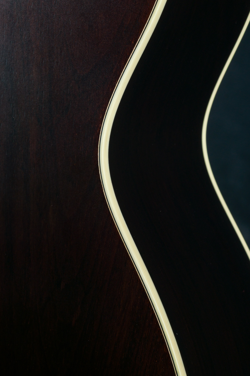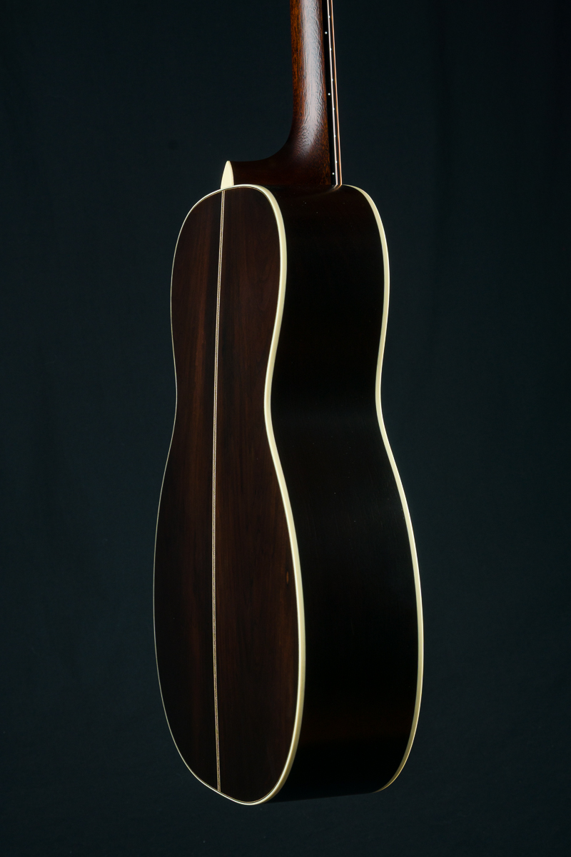 In the late 1920s, 12-fret, slotted head guitars began their historic transformation into the solid headstock and alternate body sizes found in guitars still to this day. This rare Limited Edition 00-12 Vintage model is built Brazilian Rosewood back and sides paired with an Aged Tone torrefied Adirondack Spruce top and bracing with satin finish. Vintage specs include Ivoroid bindings, 1930’s style herringbone purfling, extra vintage ring rosette and backstrip, traditional bridge, and Animal Protein glue construction.