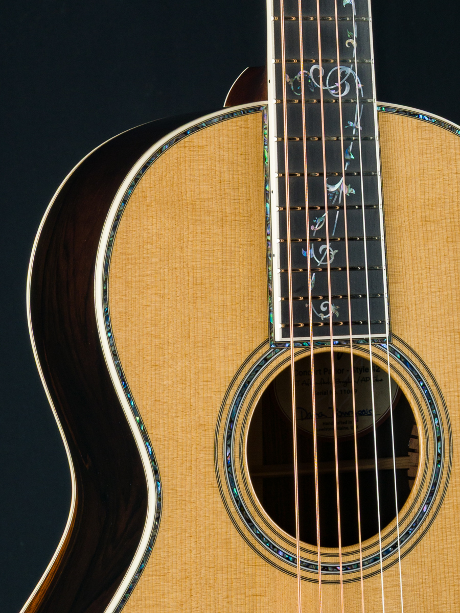 Designed for beauty and performance, this guitar is incredibly responsive, ideal for fingerstyle players yet fully capable of handling a flatpick with ease. The 42-style Concert Parlor blends ornate, turn-of-the-century inspiration with modern craftsmanship and design. The custom 12-fret Concert Parlor delivers a rich, powerful voice that far exceeds expectations. A true tonal powerhouse in a refined, vintage-inspired package.
