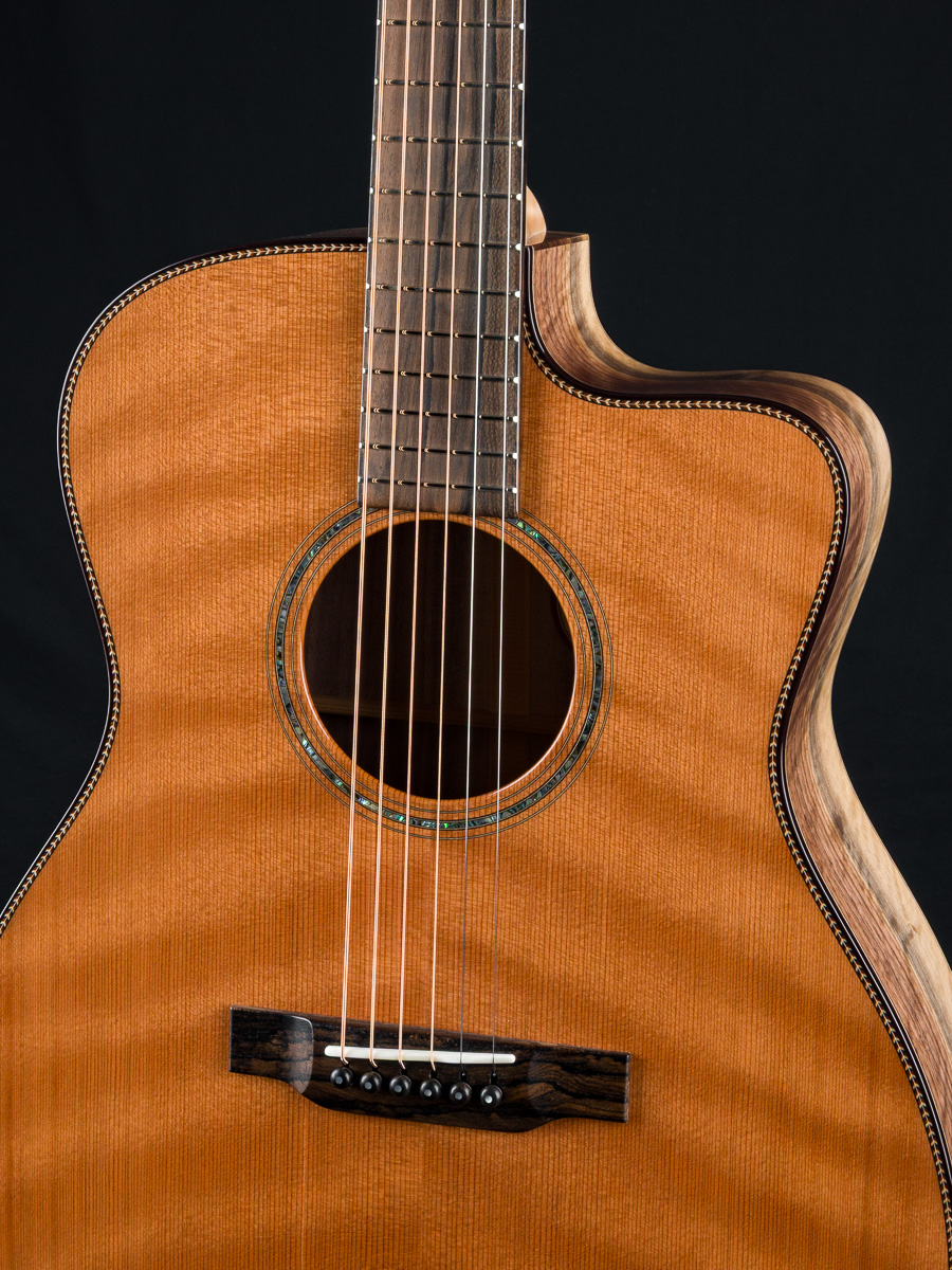 A highlight of the 2026 NAMM Show in Anaheim, CA, the ‘Sawmill Custom Series’ GA Cutaway is the first to showcase woods 100% from Bourgeois’ new proprietary sawmill in Lewiston, ME and at a nice price. The Sawmill custom features a Flamed Redwood top paired with figured Walnut back and sides along with a Flamed Maple satin finish neck and Ziricote fretboard and bridge.