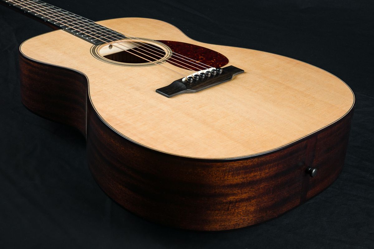 Handcrafted in Lewiston, Maine, the Professional Series is a quality build for the working musician. Pairing a natural Sitka Spruce top with Honduran Mahogany back and sides, the OM Country Boy Satin harkens from a no-frills design approach to deliver a high performing short scale guitar perfect for vocal accompaniment. This build features their newest satin finish lacquer, offering vintage tone and a smooth, broken-in feel with a refined, traditional finish.