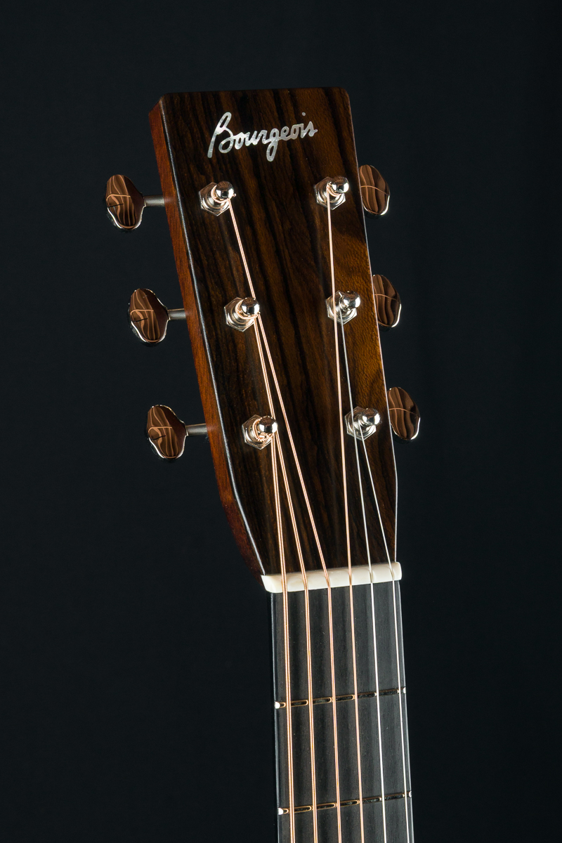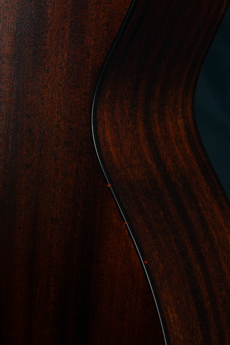 Features include Ebony fretboard and bridge, Mahogany neck, black body bindings, Ziricote headstock overlay, wood ring rosette, Mother of Pearl dot inlays and logo, Schaller Nickel tuners, Ebony pins, 1 3/4″ nut width, 2 5/16″ saddle spacing, 25.5″ scale length and more.