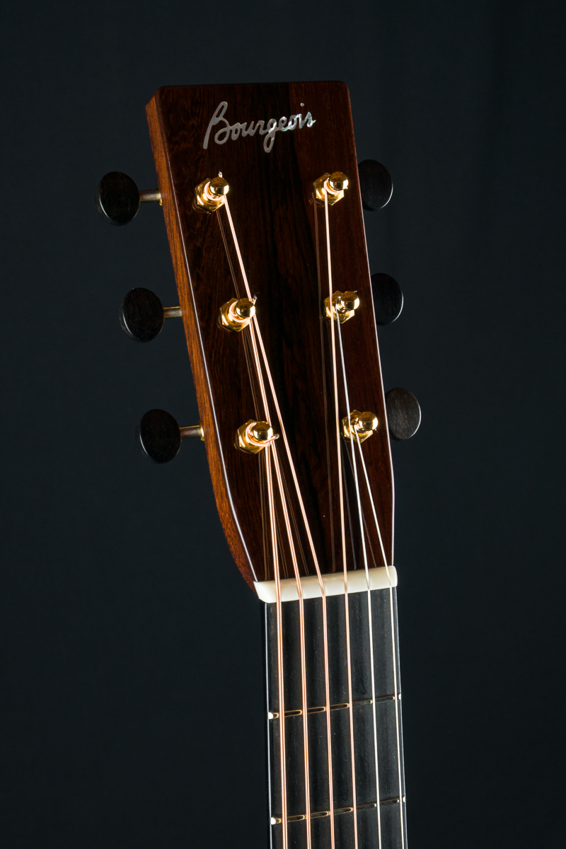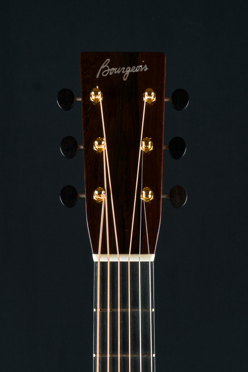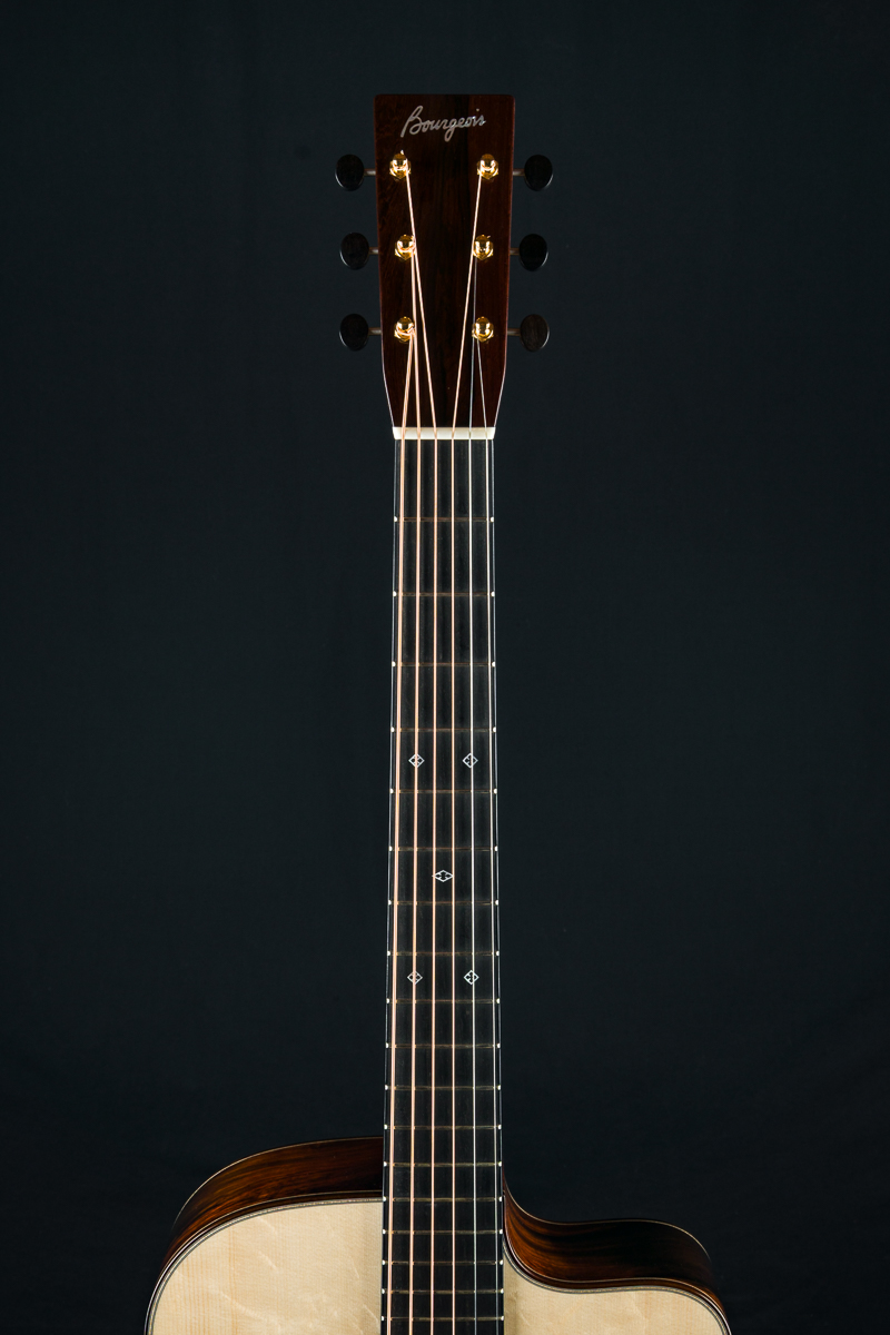 The Bourgeois OMC Soloist 50th Anniversary Brazilian guitar celebrates 50 years of Dana Bourgeois’ legendary craftsmanship showcased in his most popular and iconic design. A centerpiece at the 2025 Fretboard Summit in Chicago recently, this rare and limited OMC Soloist 50th custom features stunning Brazilian Rosewood back and sides, considered the Holy Grail of tonewoods for it’s warm and balanced glassy tone, paired with a hand voiced figured Bearclaw Italian Spruce top along with Mother of Pearl ‘Ghost’ Squares & Diamonds fingerboard inlays, custom inlay on the heel cap plus Aged Tone torrefied Adirondack Spruce bracing with stamped 50th Anniversary center strip and 50th Anniversary label signed by Dana Bourgeois.