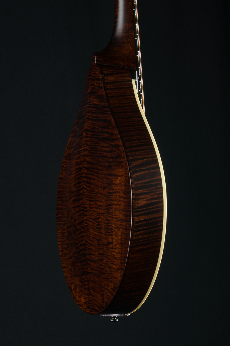 The MT Mandola is Collings’ entry-level satin finish mandola with simplified appointments. Don’t let the “entry-level” part fool you- its built with the same quality construction as their highest models. It has a comfortable 15.9″ scale length, and can be played like a mandolin without the High E, but the low C string adds a whole new dimension of musical possibilities. With a fully carved Adirondack Spruce custom gloss top and satin finish Flamed Maple back, sides and neck, the MT Mandola is undoubtedly one of the best values out there in a professional quality A-style Mandola.