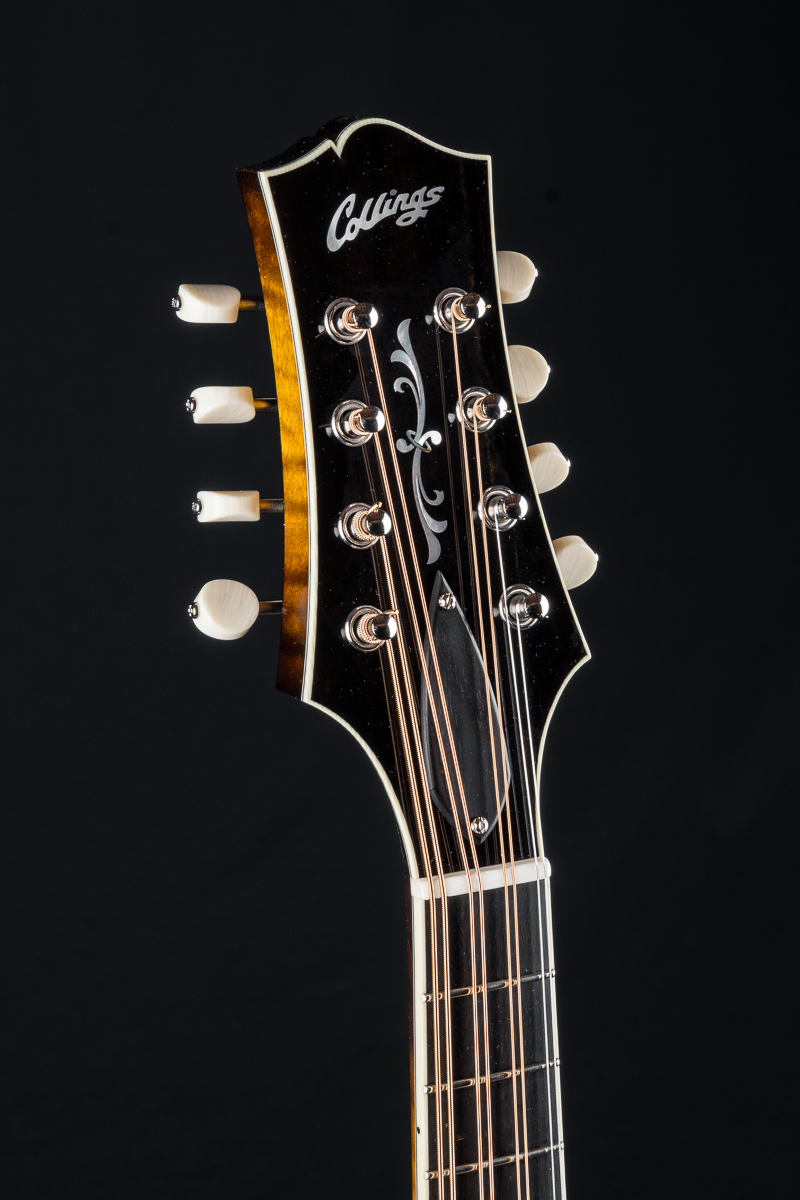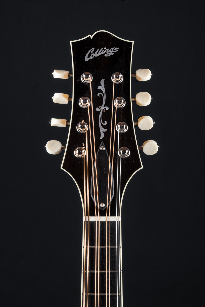 Features a Collings Nickel tailpiece, full Ivoroid bindings on the body, neck and headstock with white/ black purfling, Ebony radiused fretboard and floating adjustable bridge, Pearl flourish and logo headstock inlays, Pearl dot fretboard inlays, bone nut and more.