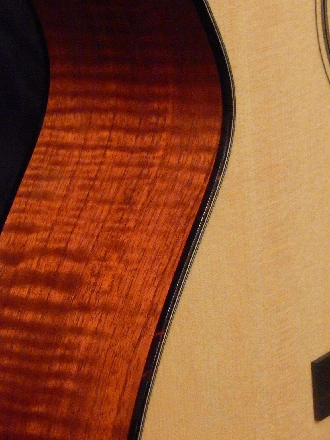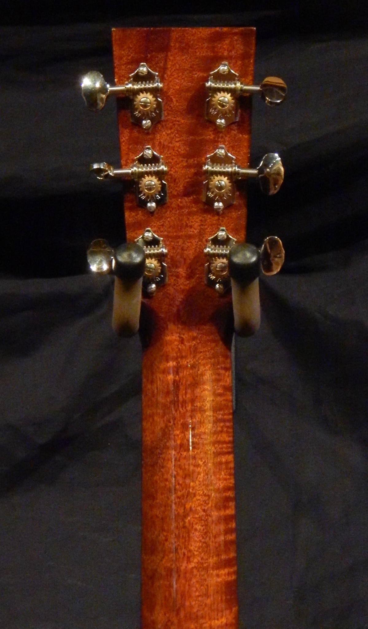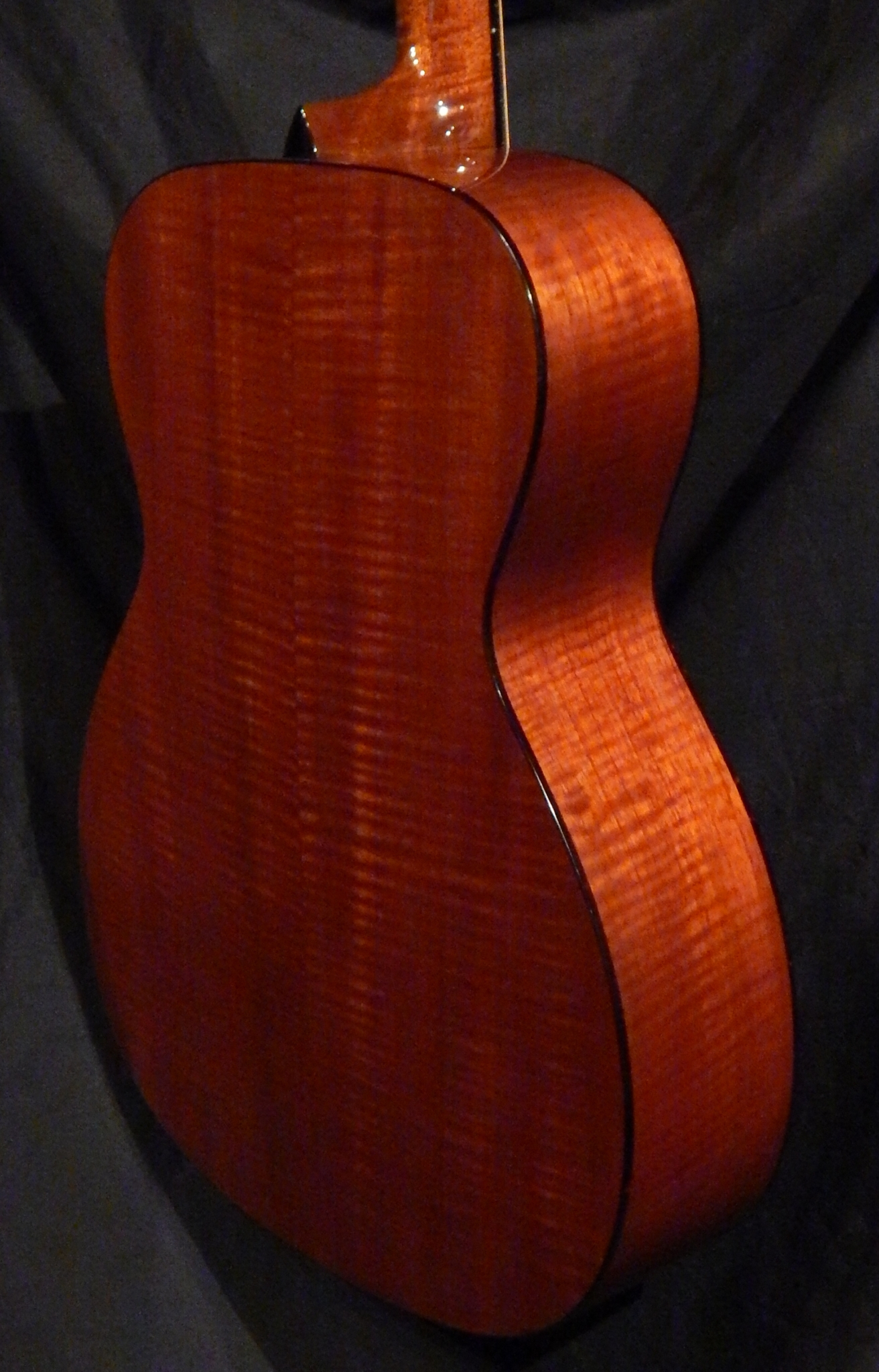 This great set of Flamed Red Mountain Cedar for the back and sides comes from the mountains of Peru. It is light weight yet stable, and has a high level of vibration. Paired with a premium Sitka Spruce top with Adirondack braces, this guitar sings in your hands. Other features are Figured Honduran Mahogany neck that compliments the Mountain Cedar and the custom 1 3/4″ nut width for comfort. This guitar is a great rounded sounding OM with balance and clarity right from the mountain top.