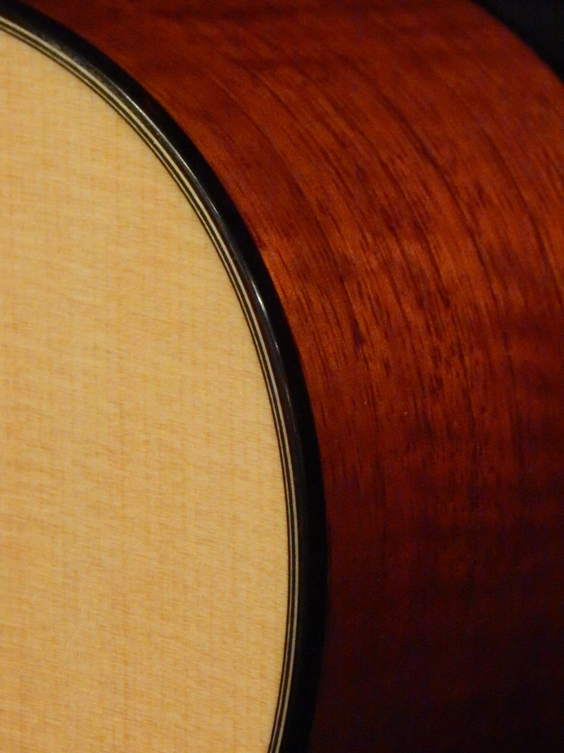 Red Mountain Cedar (Cedrela montana) is a very close cousin of Spanish Cedar. It’s almost indistinguishable in all respects, but has the good fortune of evading the CITES export restrictions we must adhere to with Spanish Cedar. Despite it’s name, it is not a cedar at all. It is from the Meliaceae family of flora, which includes mahogany found in the American tropics. It’s a light-weight back and side wood (having a positive impact on tone) but is very stable. It’s exceptionally resonant and is well suited to both classical and steel string guitars.