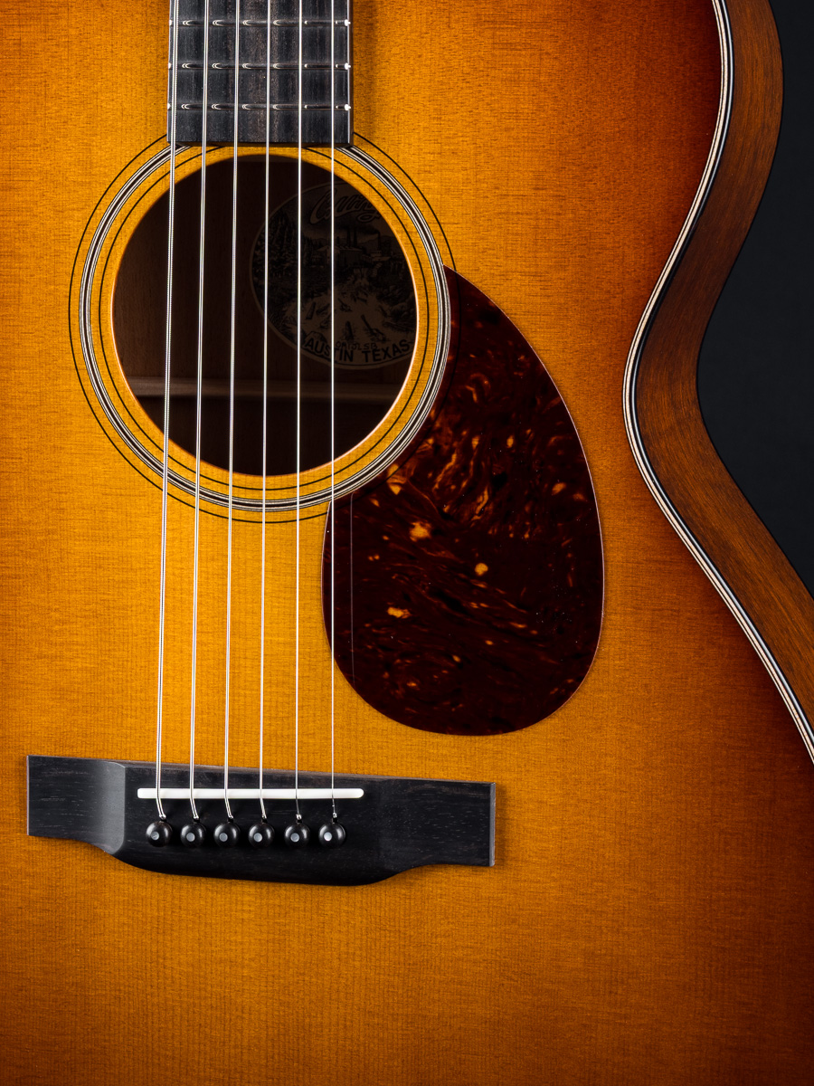Lage has an affinity both tonally and aesthetically for vintage guitars whose finishes have mellowed after years of playing. To recreate this effect and achieve the ideal combination of a thin finish application and a vintage aesthetic, Collings landed on a custom satin lacquer. This finish offering not only feels and looks vintage, it has the same inherent openness of tone that is present in the best pre-war instruments.