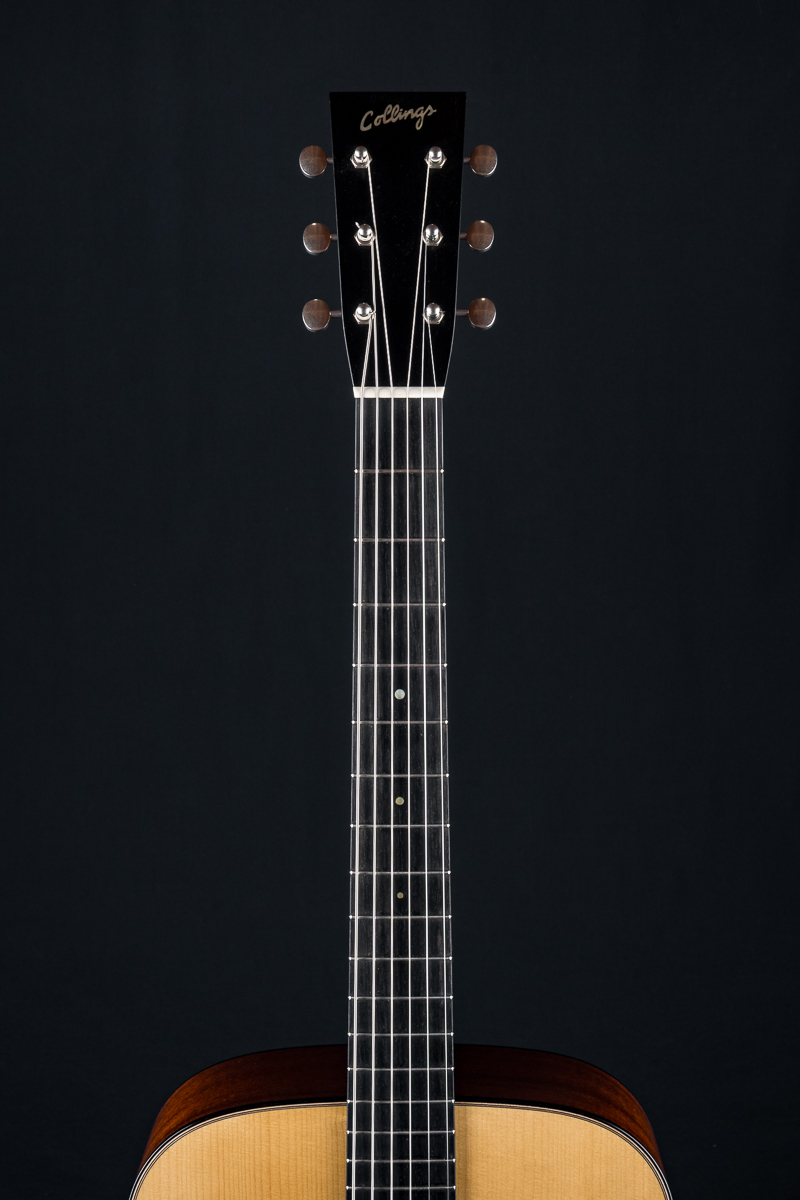 Lage has an affinity both tonally and aesthetically for vintage guitars whose finishes have mellowed after years of playing. To recreate this effect and achieve the ideal combination of a thin finish application and a vintage aesthetic, Collings landed on a custom satin lacquer. This finish offering not only feels and looks vintage, it has the same inherent openness of tone that is present in the best pre-war instruments.