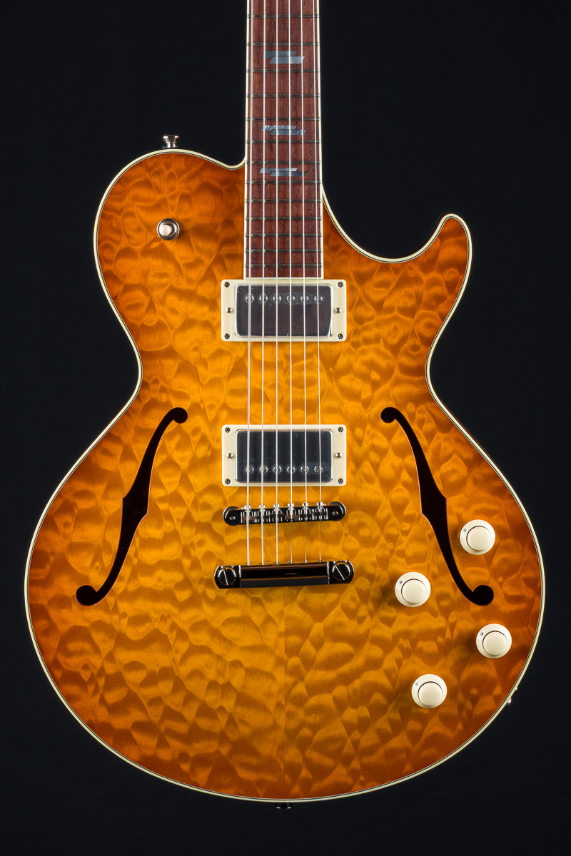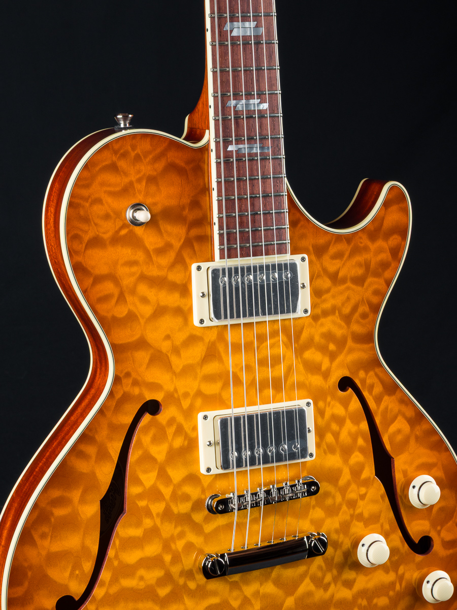 Collings SoCo Deluxe Carved Premium Quilted Maple and Mahogany Iced Tea Sunburst Semi-Hollow Custom