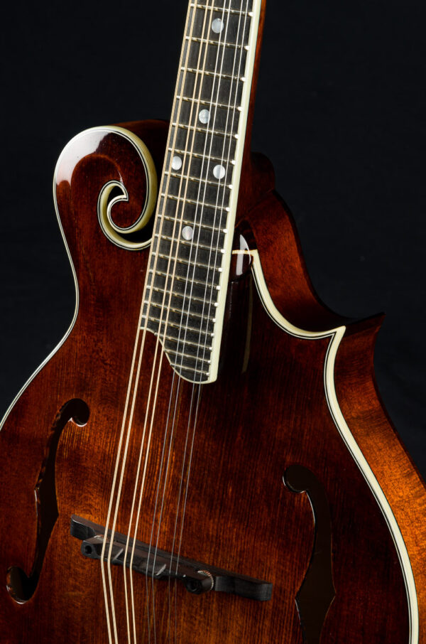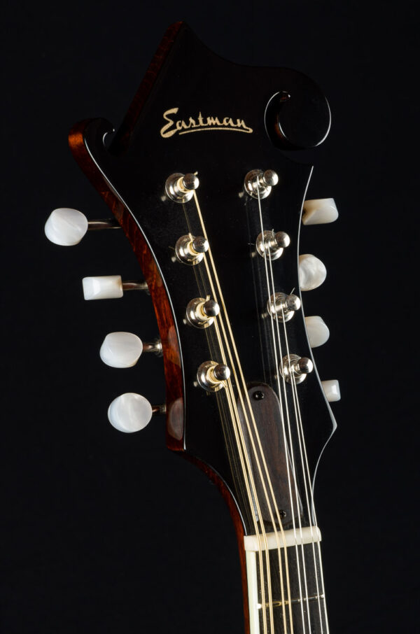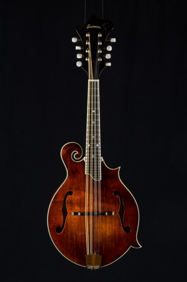 An all solid, full gloss F-style mandolin. Each Eastman MD515 mandolin is individually hand-built using traditional materials & “Old World” craftsmanship with solid Spruce top, solid Maple back & sides, Ebony fingerboard & adjustable ebony bridge. F-style body with F-holes for superb tone & projection.