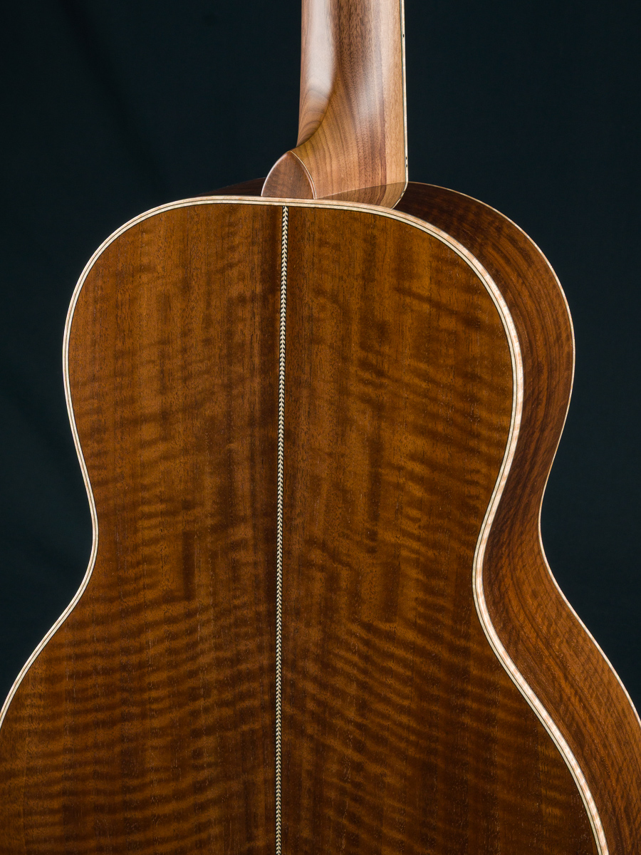 Other features include Ebony fretboard and pyramid bridge, Figured Walnut headstock overlay, herringbone rosette and backstrip, Waverly Brass 3-per-side tuners with Ebony buttons, Pearl square and diamond fretboard inlay and logo, Maple wedge, Walnut heelcap, Ebony pins with Pearl dots and more.