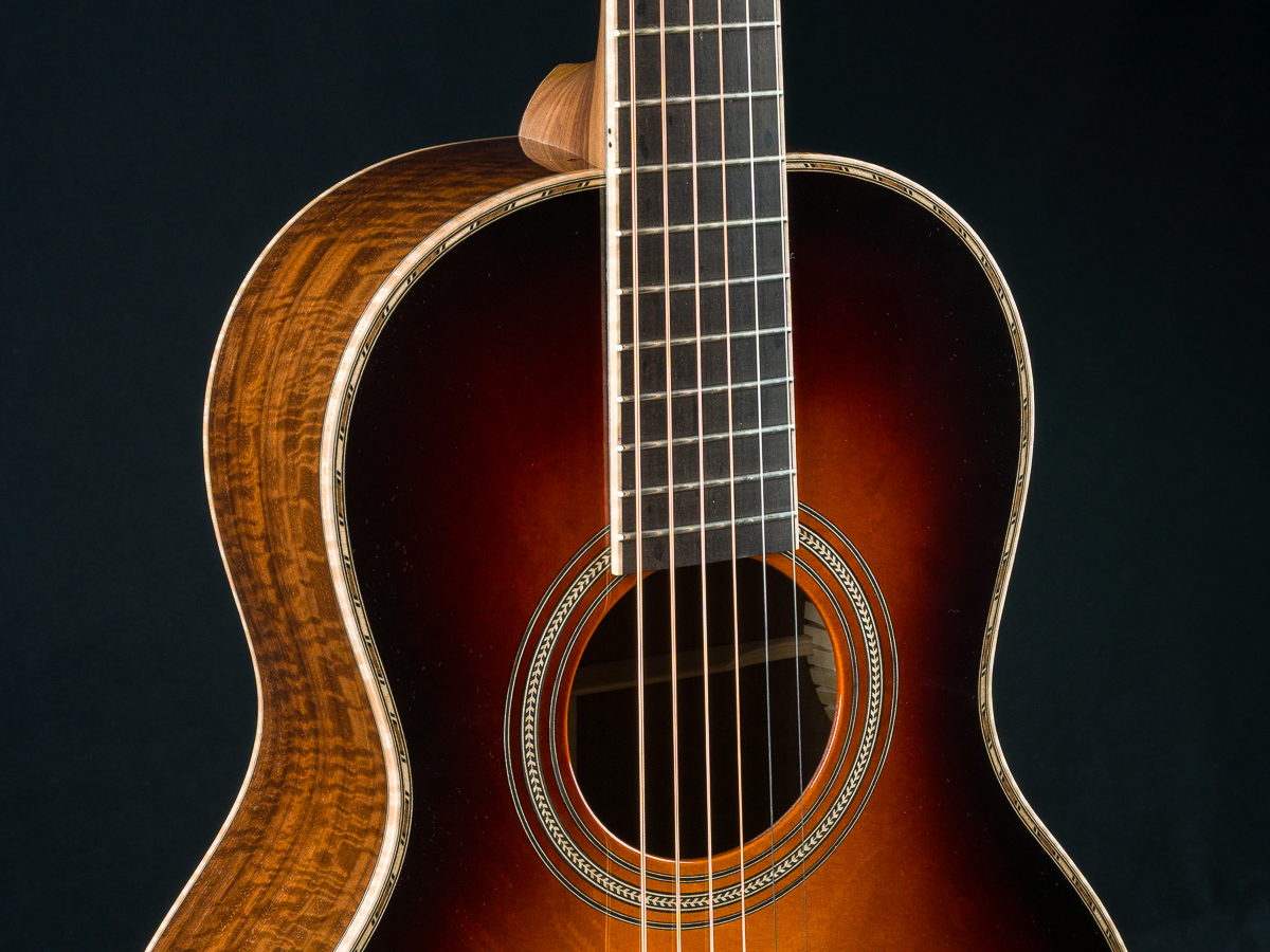Huss & Dalton 0-SP Parlor 12-Fret Figured Black Walnut and and Bearclaw Sitka Spruce Sunburst Custom