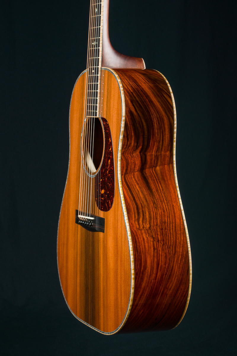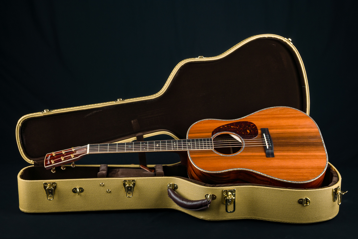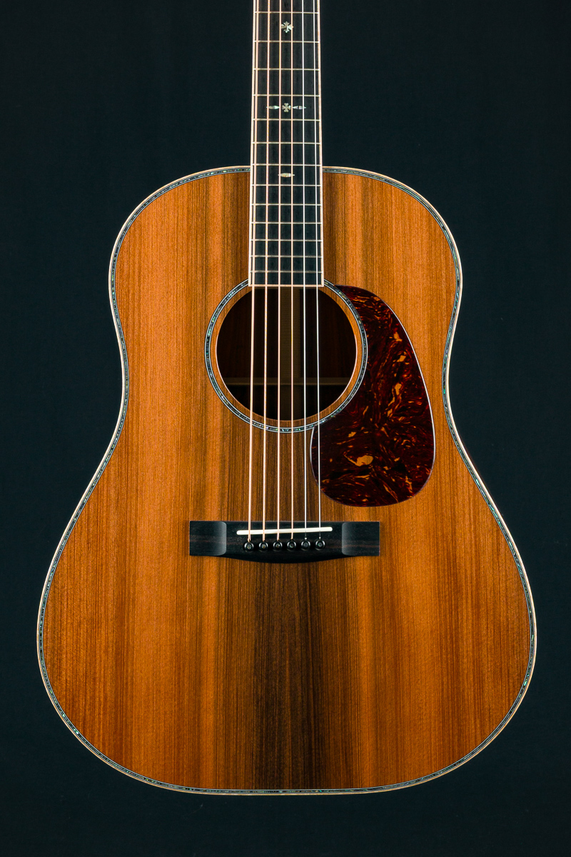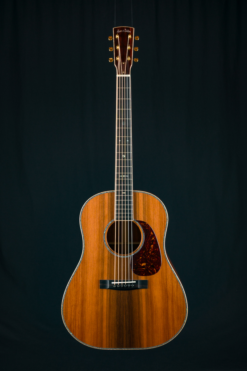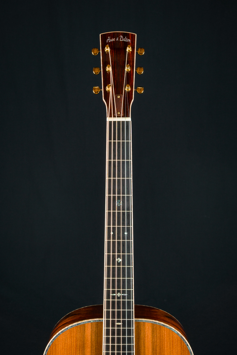 A stunning custom short scale slope-shoulder dreadnought from our friends at Huss & Dalton in Staunton, VA. Inspired by the classic slope-shoulder guitars of the 1930s and ’40s but with a modern twist, this Huss & Dalton DS Custom delivers bold power, refined tone, and striking aesthetics.
