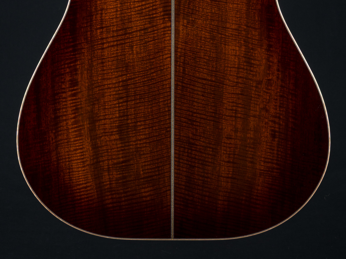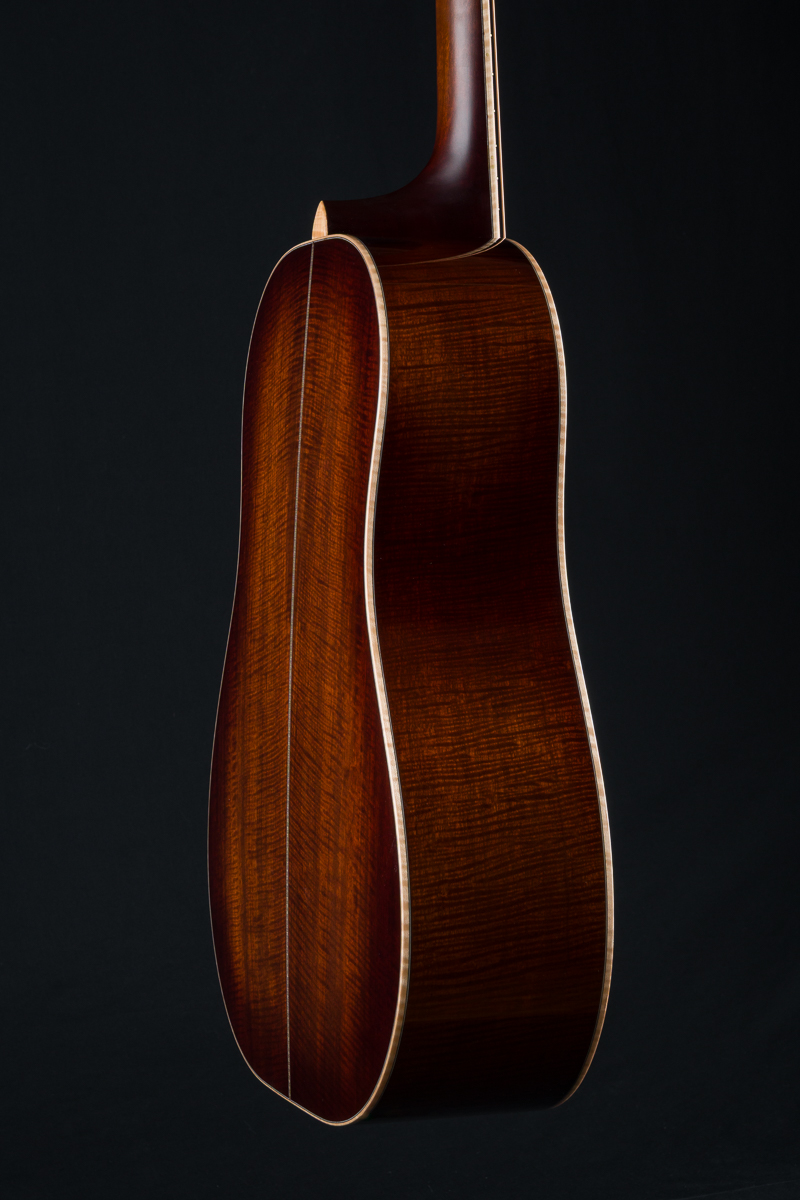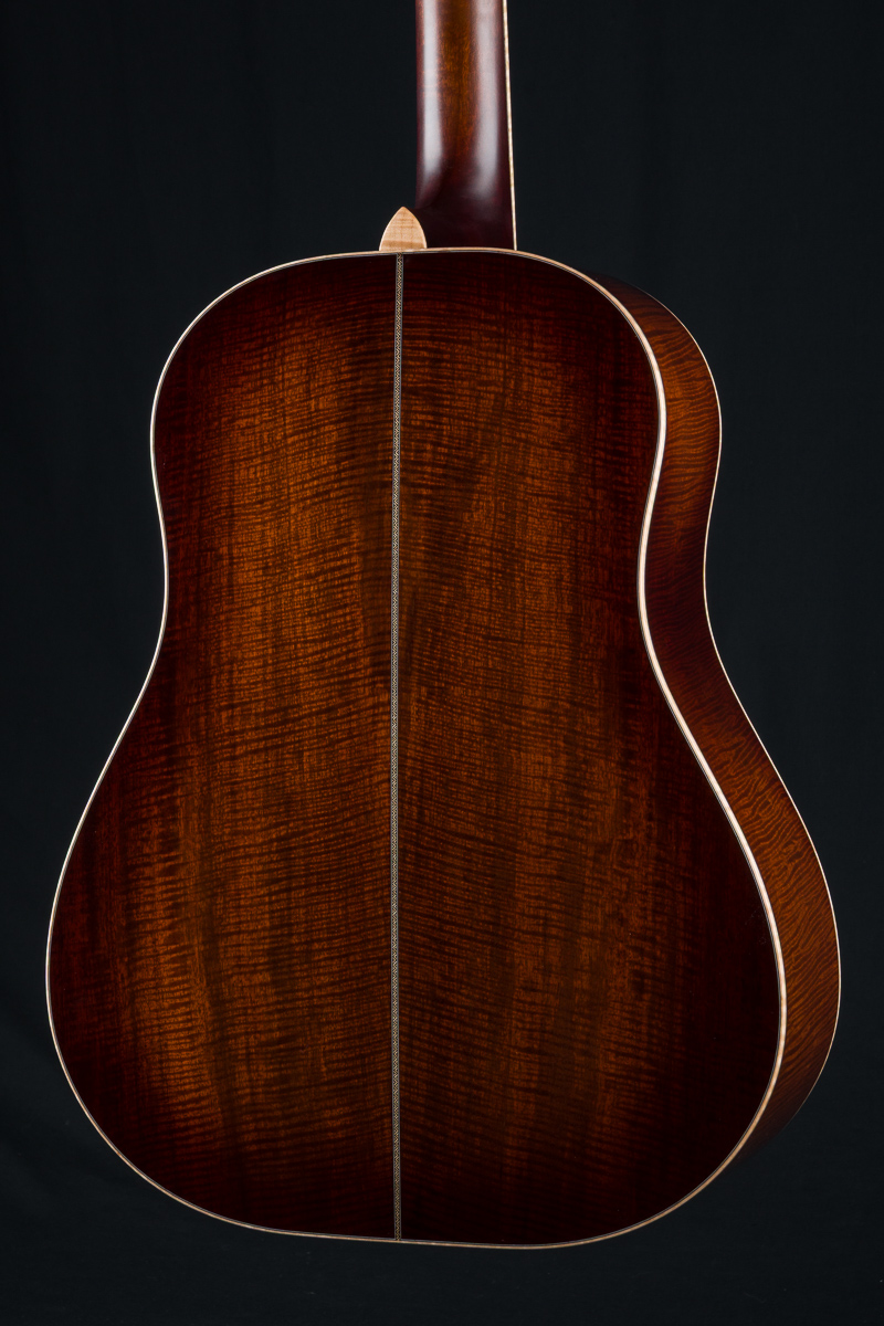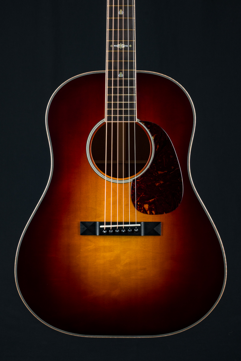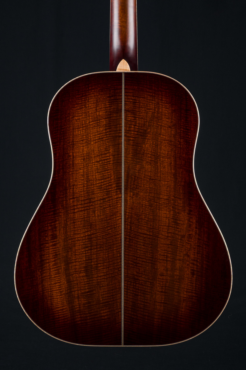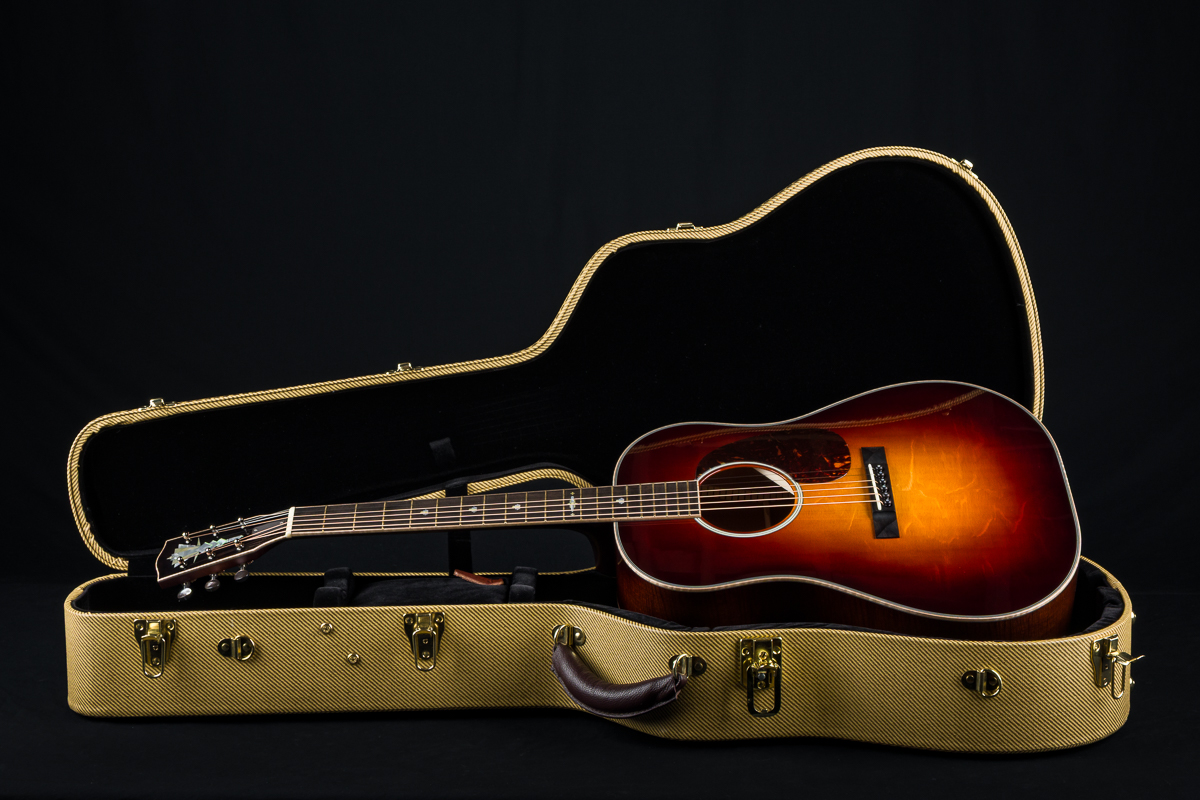 A sparkling highlight of the Huss & Dalton collection at the 2026 NAMM Show in Anaheim, CA, this DS Custom is the very first guitar to feature the Gold and Silver Mother of Pearl Art Deco fretboard and headstock inlay. The design was inspired by the Art Deco fireplace at the Staunton, Virginia workshop and was both developed and hand-cut in house by Huss & Dalton. This one-of-a-kind build features a premium set of highly flamed Fiddleback Mahogany for the back and sides, paired with a Bearclaw Lutz Spruce top with 2-tone all over sunburst finish and full Flamed Maple body, fretboard and headstock bindings. A nod to the traditional slope-shoulder guitars of the 1930s and ’40s, the Huss & Dalton DS Custom is designed for brawny power with premium tonewoods and dashing good looks.