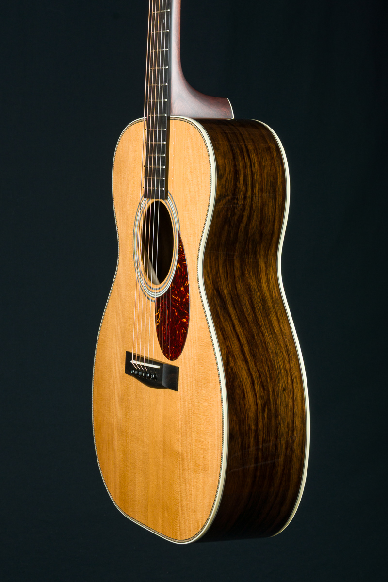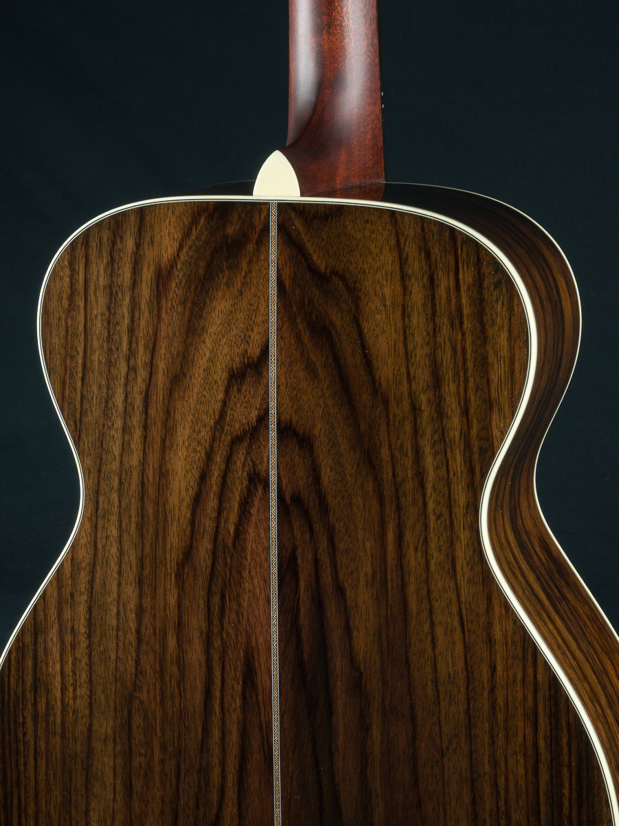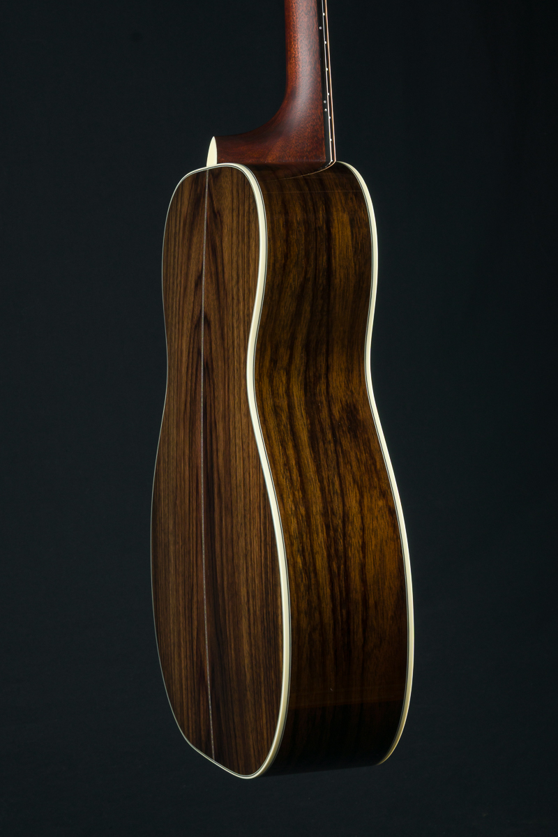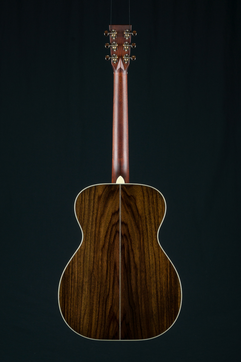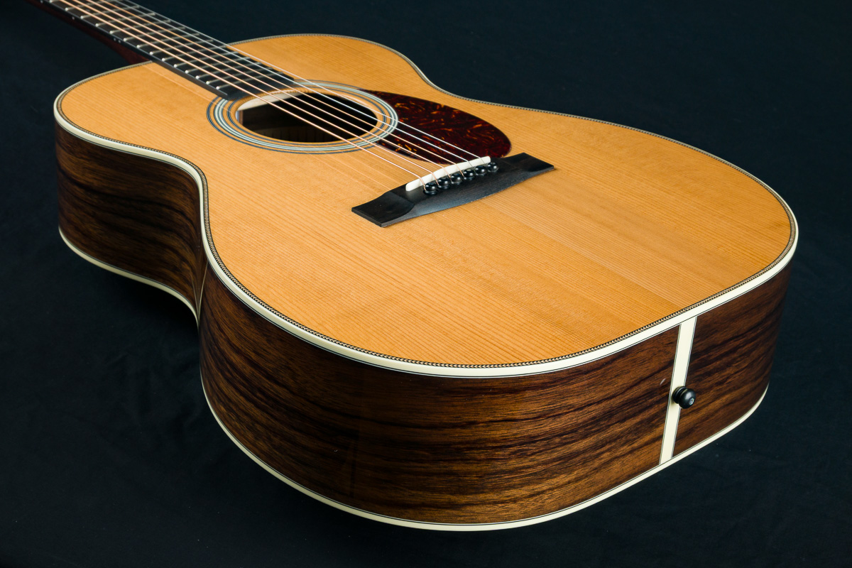 Huss & Dalton’s TOM-R is their traditional flat top OM designed for the versatile mix of flatpicking and fingerpicking. The even response and airy, shimmery qualities the OM has always been known for are maintained and expanded on in this boutique build with classic timeless styling. The TOM-R Thermo-Cured torrefied Adirondack Red Spruce and Wild Grain Indian Rosewood traditional flat-top construction with Adirondack Spruce bracing, used in all Huss & Daltons, is especially suited for finger-style players or flatpickers with a lighter touch, yet holds up to vigorous strumming when the performance becomes more intense.