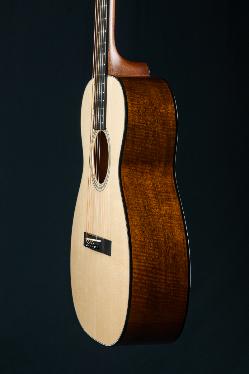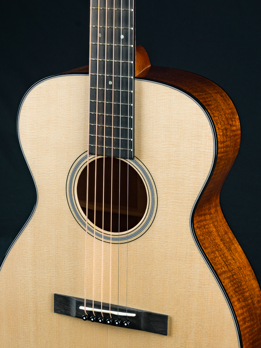A super comfortable and versatile small body build from The Martin Custom Shop, this 0 14-Fret concert sized custom is built with premium Flamed Mahogany back and sides paired with a premium grade Sitka Spruce. top with 1/4″ scalloped bracing. The combination of a short expressive 24.9” scale with a one-piece Genuine Mahogany modified low oval neck shape and the high performance parallel taper allows for easy action and fast playability.