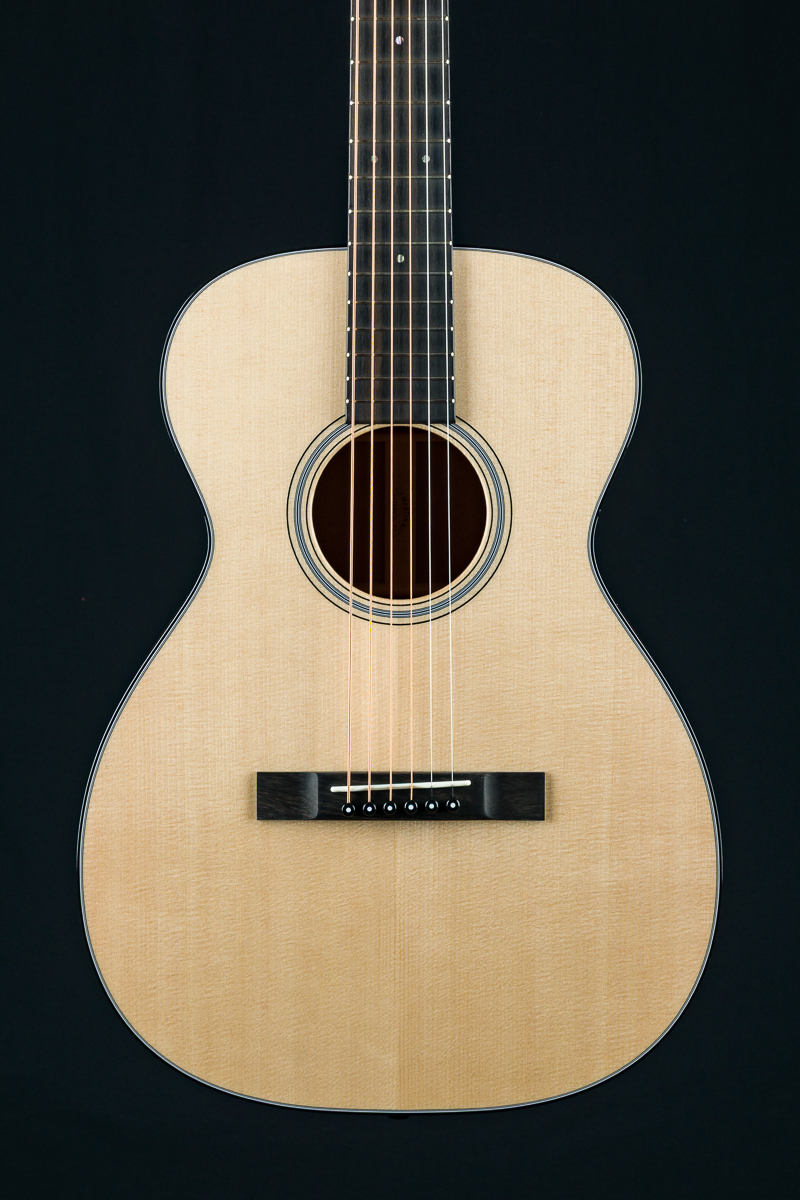 Features include Black Ebony fretboard and straight bridge, black/white 18-style multi-stripe top purfling and rosette, Black Ebony headstock overlay with old style logo, black body bindings, Grover Nickel butterbean tuners, Bone nut and saddle, Abalone old style 18 dot fretboard inlays, 1 3/4″ nut width, 2 5/32″ saddle spacing and more.
