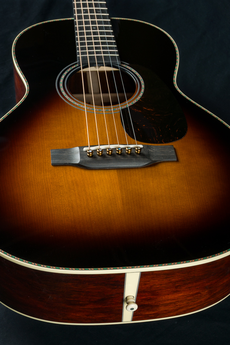 Vintage inspired tonewoods and specs adorn this Martin 00-28 Custom Shop with a custom dark Mango Sunset sunburst finish. Dating to the turn of the century in the early 1900’s, the Martin 00 12-Fret is known for it’s balance, versatility and comfort. A great set of handpicked premium Cocobolo for the back and sides is paired with an Adirondack Spruce top with Golden Era style scalloped bracing.