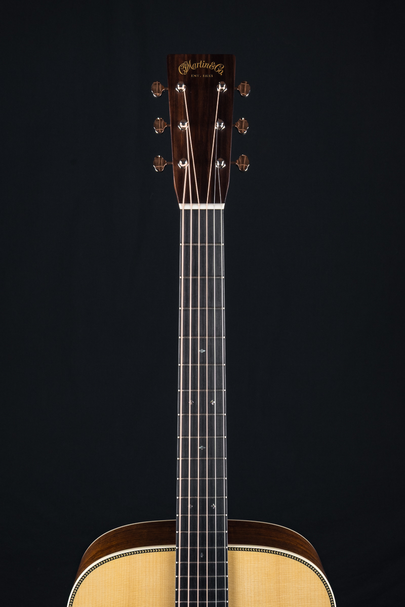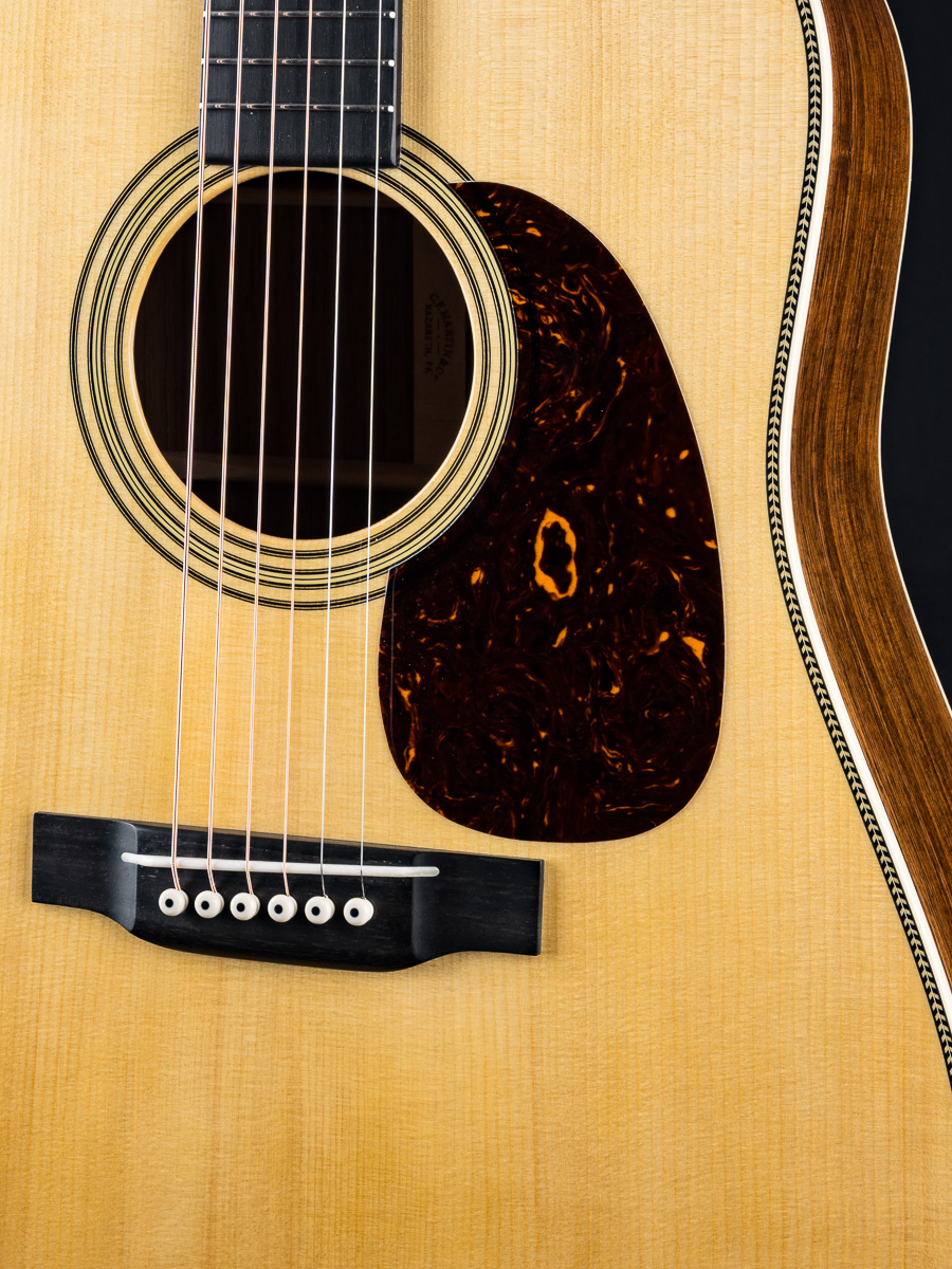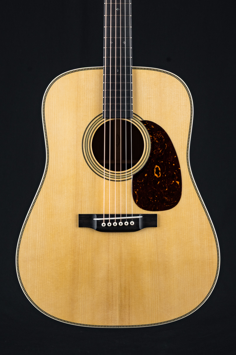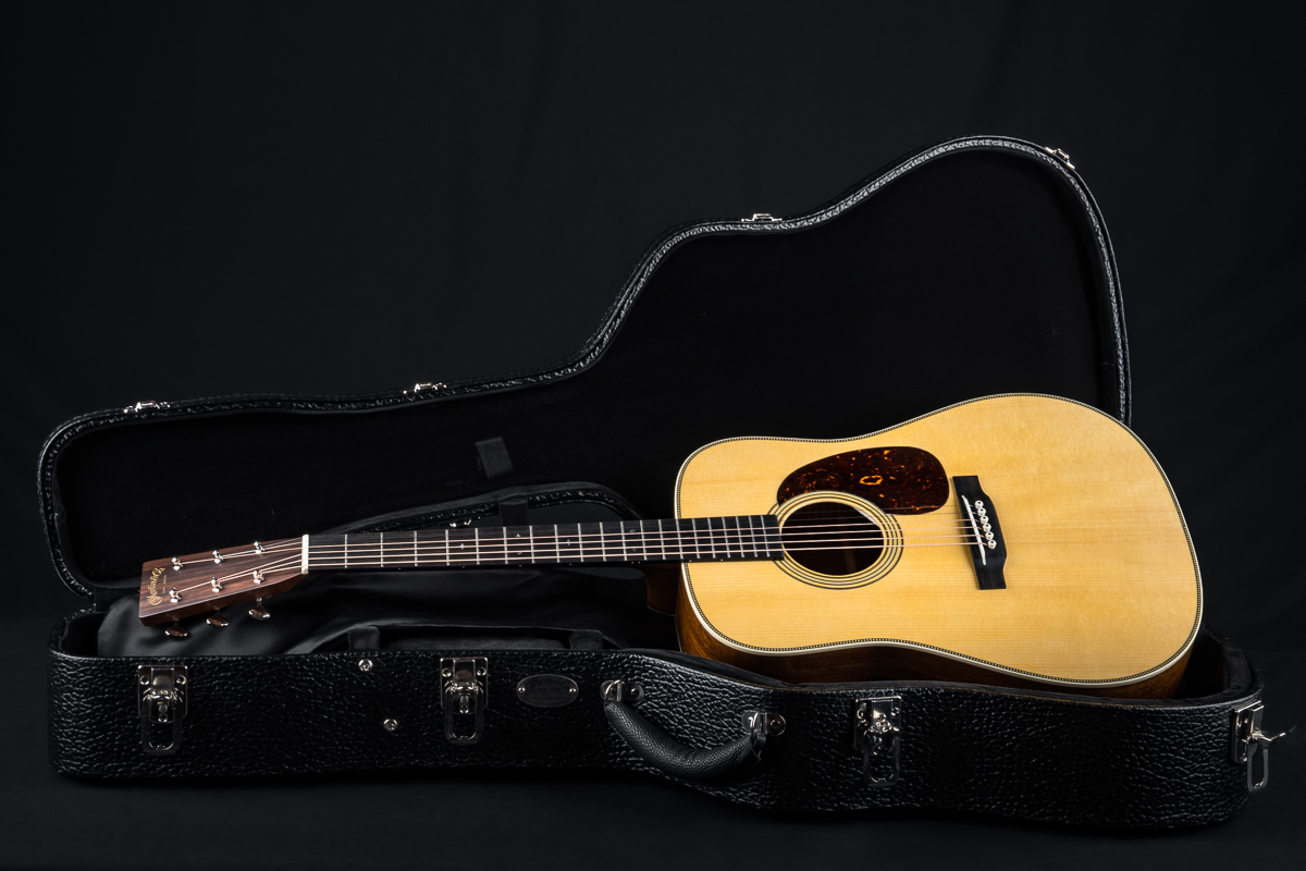A very well taken care of 2023 Martin HD-28 Custom Shop dreadnought in excellent condition with some great upgrades. Built with a premium set of Guatemalan Rosewood back and sides paired with an Adirondack Spruce top and forward shifted Golden Era style scalloped braces, this is a powerhouse dreadnought that would be a formidable addition to any jam. Deep Martin tone you are looking for with warm mids and clear highs. A straight up flatpicking cannon. Banjo players beware!