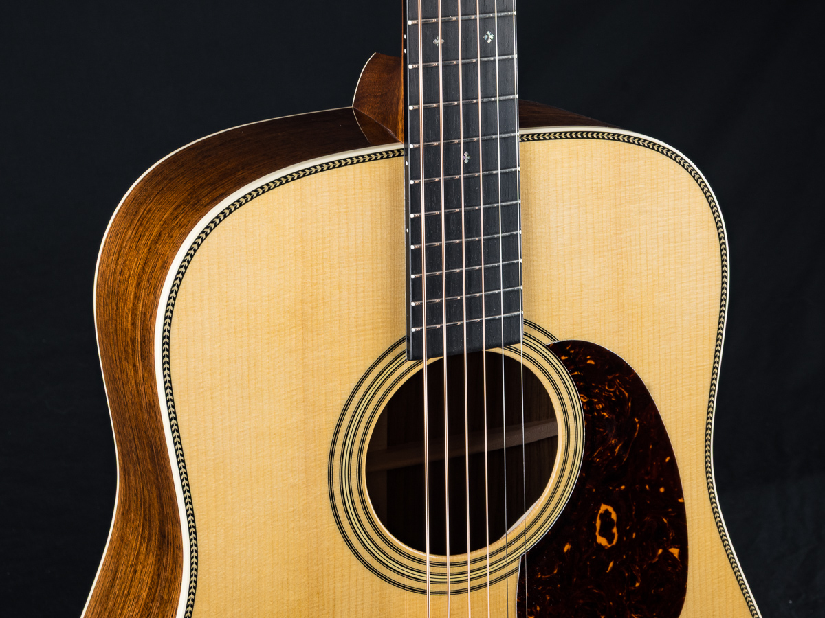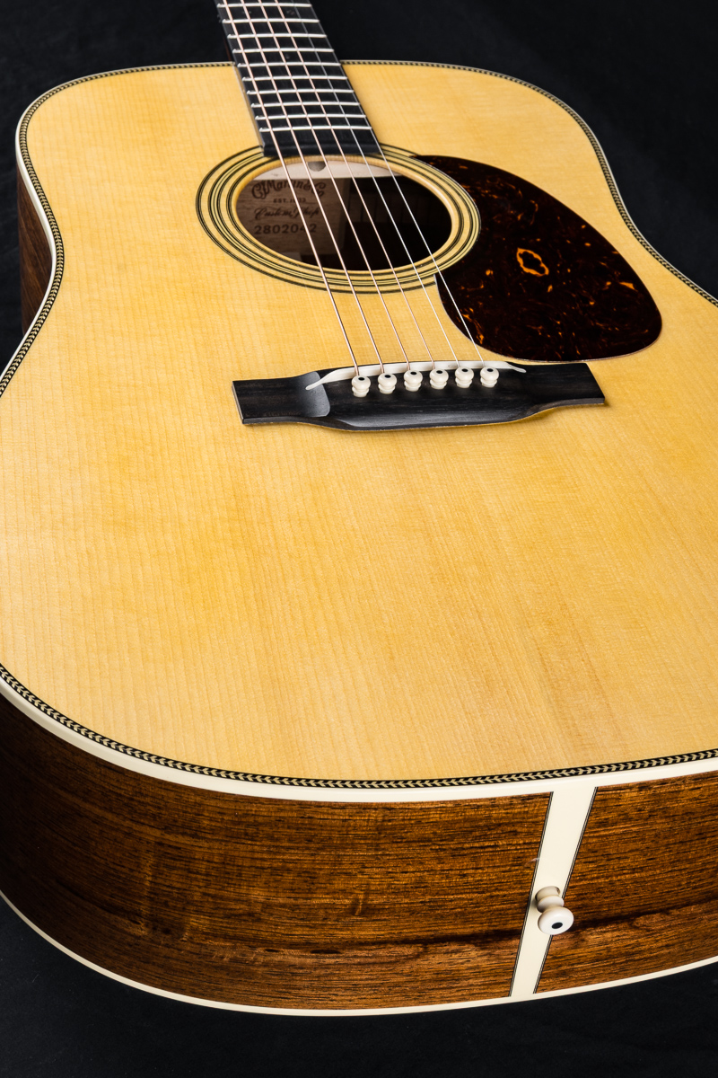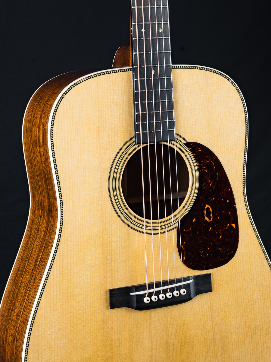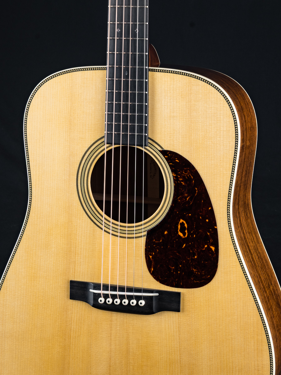 A very well taken care of 2023 Martin HD-28 Custom Shop dreadnought in excellent condition with some great upgrades. Built with a premium set of Guatemalan Rosewood back and sides paired with an Adirondack Spruce top and forward shifted Golden Era style scalloped braces, this is a powerhouse dreadnought that would be a formidable addition to any jam. Deep Martin tone you are looking for with warm mids and clear highs. A straight up flatpicking cannon. Banjo players beware!