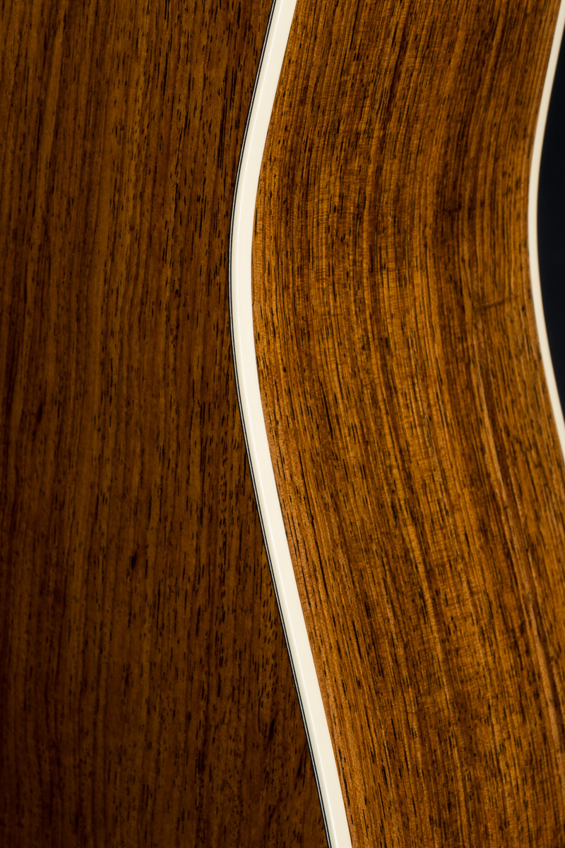 Features include Antique White body bindings, herringbone top purfling, 1-piece Genuine Mahogany neck with Authentic stamp and Rosewood headstock overlay, Black Ebony fretboard and bridge, Abalone Pearl square and diamond fretboard inlay, Nickel butterbean tuners, HD zig zag back strip, 1 3/4″ nut width, 2 5/32″ saddle spacing, and more.