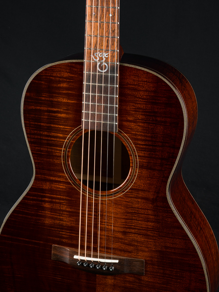 The OOO is the 12-fret predecessor of the OM. If access past the 12th fret is of no concern, the OOO adds some distinct advantages tonally and cosmetically. The extension of the body to the 12th fret adds additional airspace, which translates into increased sound volume and a more predominate bass in the EQ. The slotted peghead is a standard feature that adds classic styling. The peghead’s reduced mass accentuates the guitar’s open, airy ambiance, making it a fingerstyle favorite. You’ve seen the SCGC OOO on stage with Jeff Tweedy and Dave Matthews as a solid performing songwriter’s tool. It has also been heard on numerous recordings as a mainstay of pro session players. You will find an immediate purpose for the OOO and wonder why you didn’t have it in your arsenal all along.