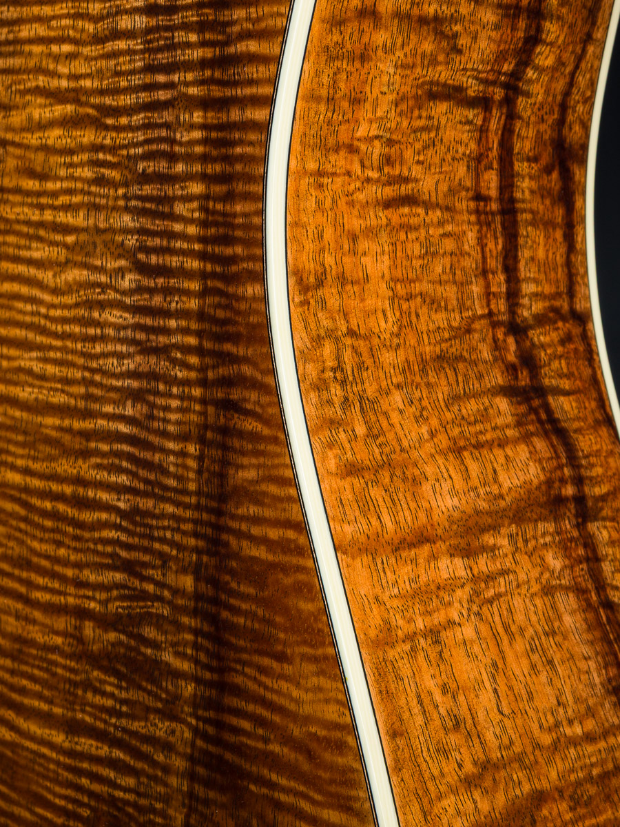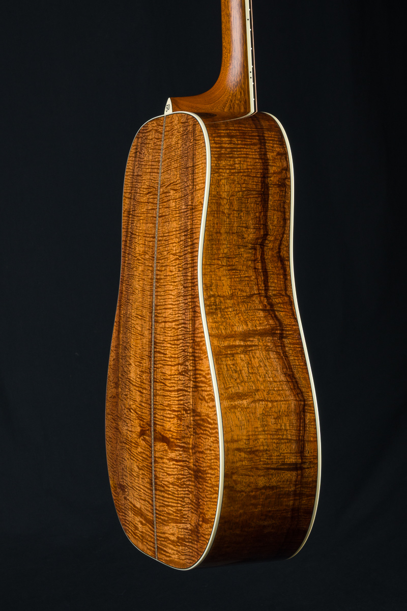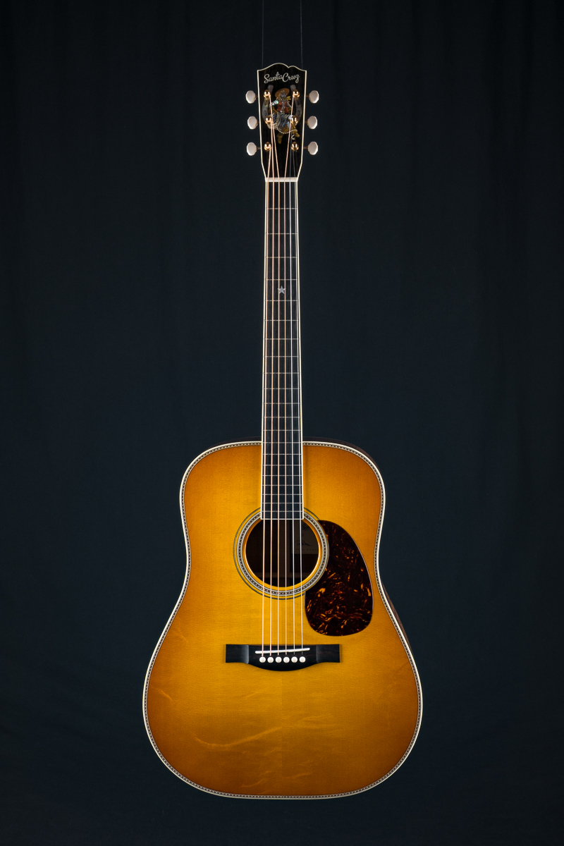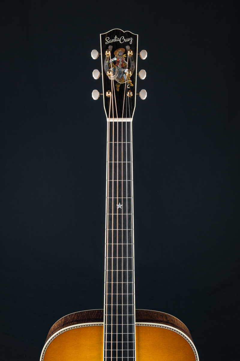 The Santa Cruz D Model has a unique tapered bracing, voiced to enhance the midrange and treble without compromising the bass volume. This voicing gives the D Model a more even balance and a greater versatility than traditionally braced dreadnoughts. The Santa Cruz Guitar Company dreadnought model was carefully conceived to accommodate the modern player’s need for sophisticated balance with more substance in midrange and treble. To deliver these qualities in the acceptable dreadnought-sized body required a very non-traditional approach, as compared to the factory offerings of the day. Using time honored lutherie skills, SCGC created a Trojan Horse – familiar on the outside, dangerous on the inside. SCGC’s innovative D Model remains a mainstay of artists who require acoustic volume without compromising the quality of higher frequencies.