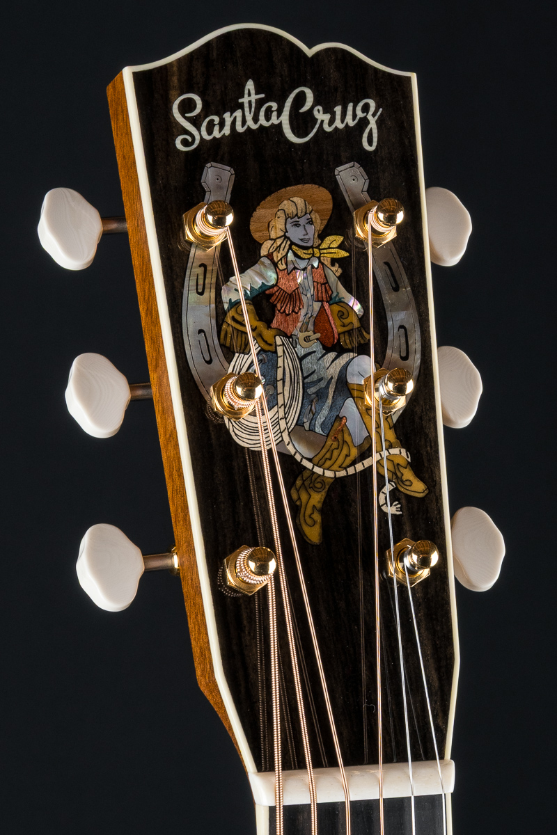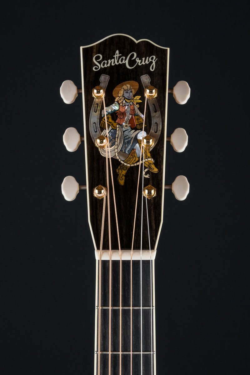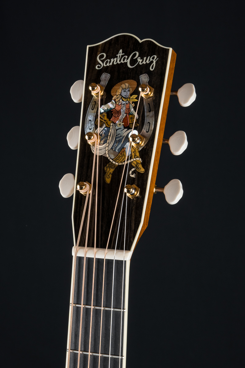 A one of kind 50th Anniversary build, the D Custom Clementine Cowgirl from Santa Cruz Guitars was the cornerstone of their display at the 2026 NAMM Show. The Cowgirl inlay has a unique place in Santa Cruz Guitar Company’s history- both as a visual motif and as a symbol of the company’s independent spirit. First introduced on their 35th anniversary guitar, the “Clementine Cowgirl” inlay wasn’t just decorative, it celebrated a moment in SCGC’s history. It evokes the rugged individualism of the American West and pioneering spirit that parallels SCGC’s own journey- forging a path outside the factory system, focuses on artistic purpose rather than mass production. For the 50th Anniversary Dreadnought guitar, SCGC founder Richard Hoover chose to bring the Cowgirl motif back because it resonates perfectly with this milestone. It ties together past and present: honoring a design from a meaningful previous anniversary while representing enduring values. There are extra added elements as well that point to the company’s past including figured Koa body, SCGC’s S29 purfling, and their famous Georgia Peach Sunburst with a “Southern Belle” style soundhole finish.