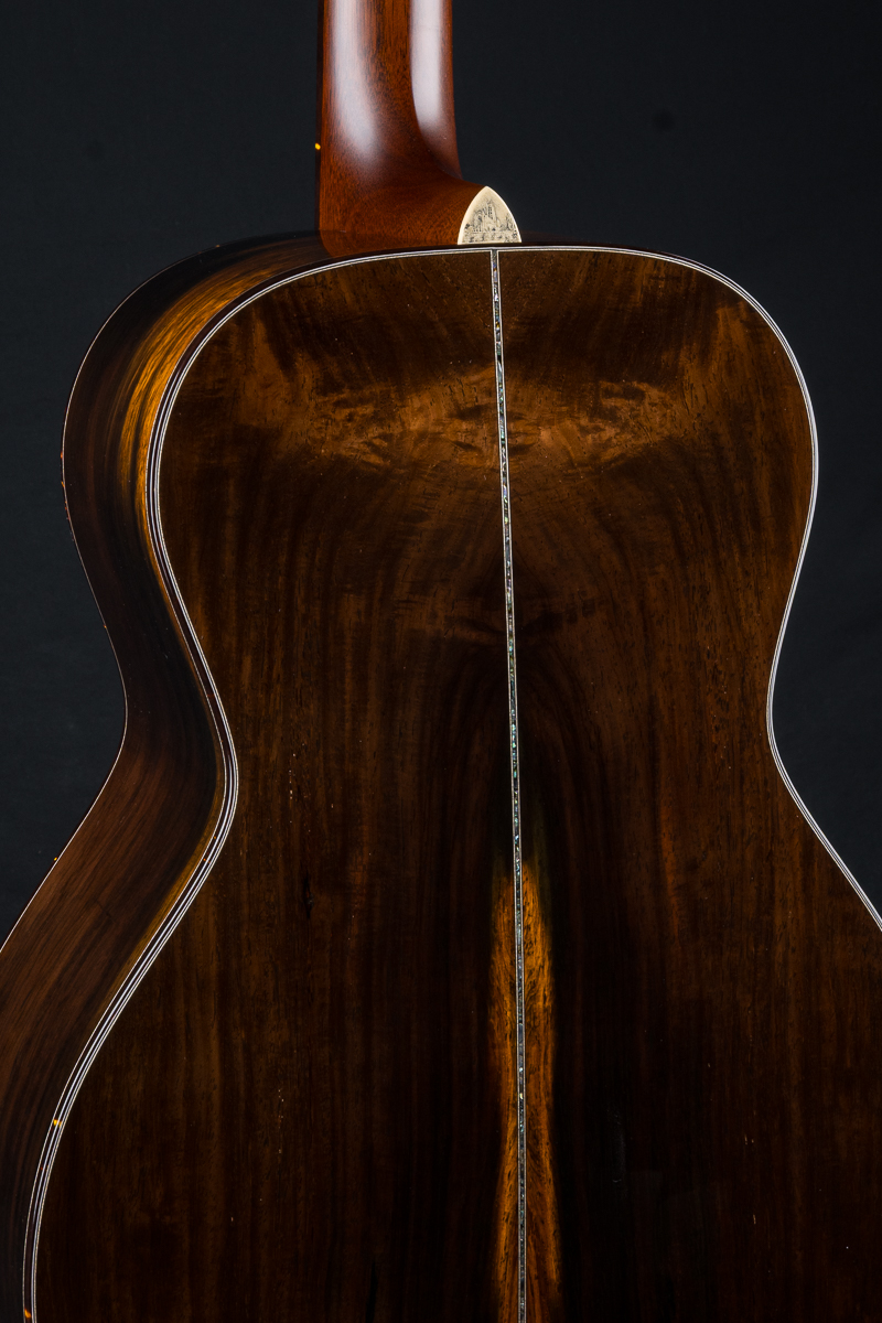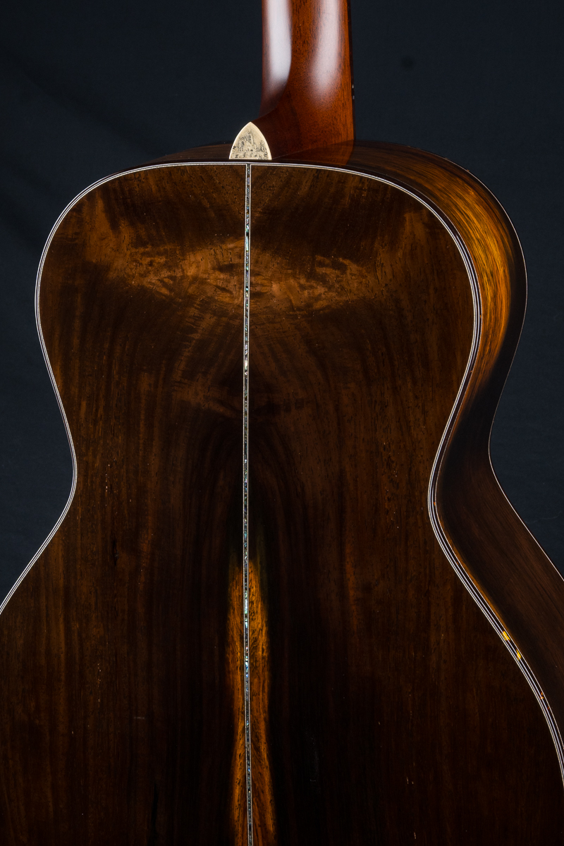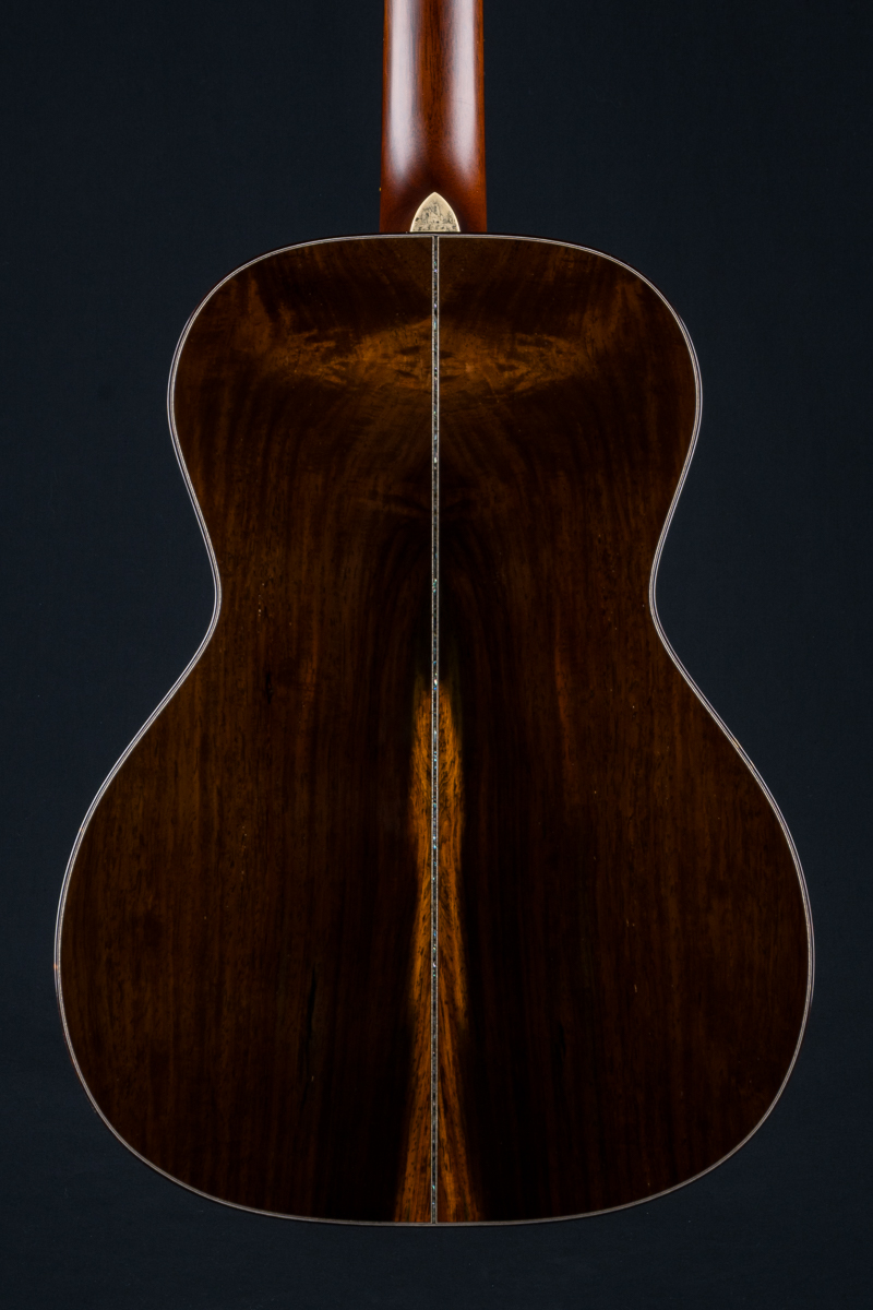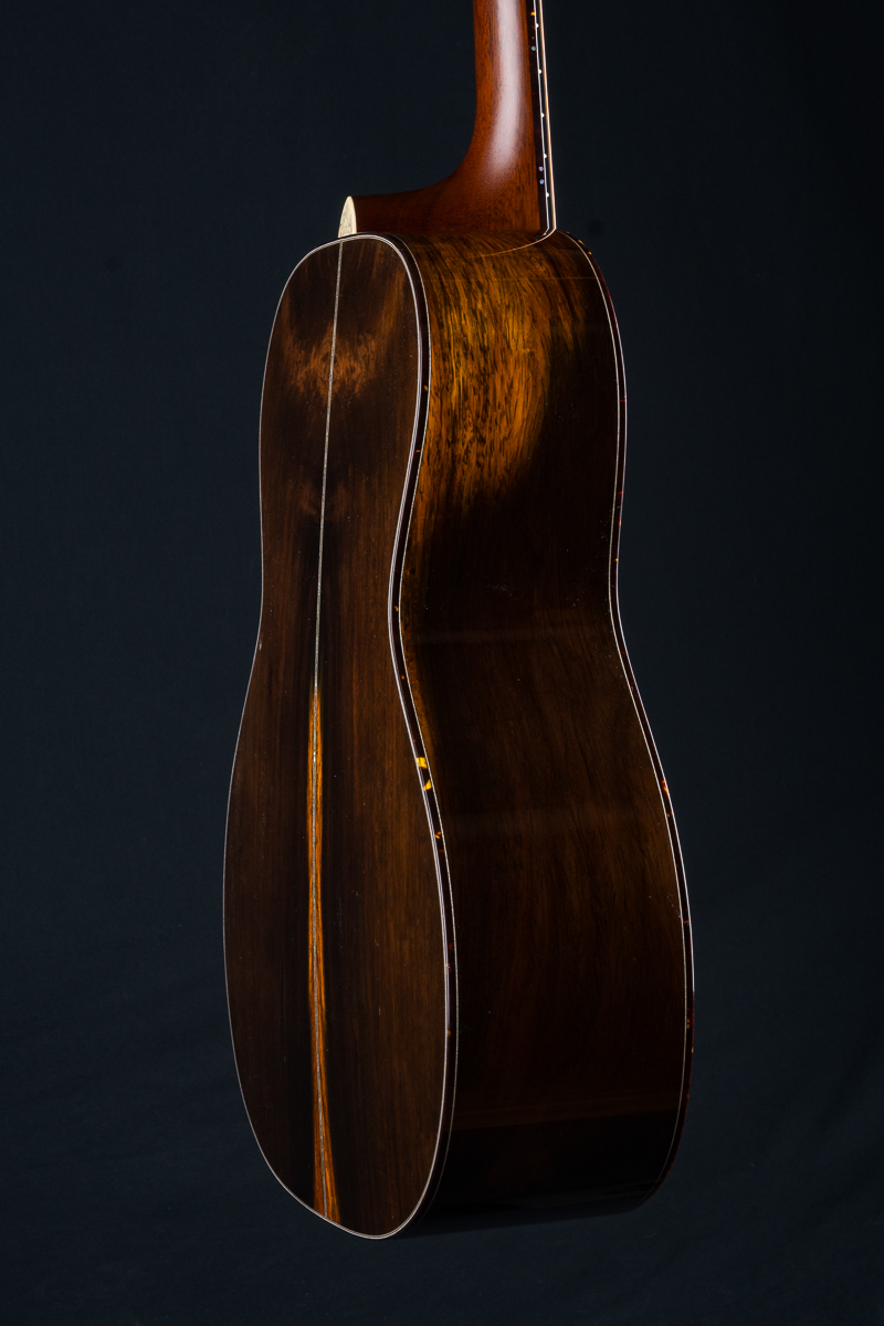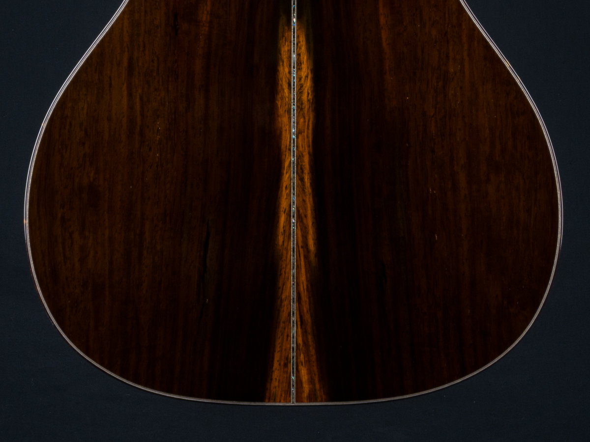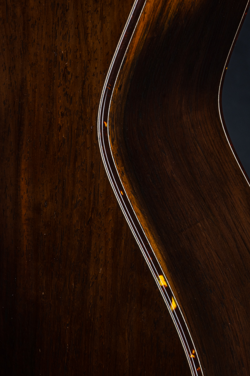 The H13-42 Cathedral is a guitar to behold. The major components of this H13 13-fret build have hallowed origins. First, the heart-swelling 125+ year old example of beautiful Brazilian Rosewood that comprises the body of this instrument comes from a board Richard Hoover from SCGC acquired that was abandoned in a stonewalled room of the Bryn Athyn Cathedral in Pennsylvania. Originally sourced in the late 1800’s/ turn of the century for inner adornments and lining of the Pennsylvanian cathedral, some leftover quartered Brazilian Rosewood was left to age to perfection in this stone room which is akin to a cave for consistent temperature and humidity- the most ideal conditions to age this extremely rare wood for the past 125+ years. Beautiful in color and contrast, this wood is just not found at this age and stored condition. A collector’s set of premium Brazilian Rosewood from hallowed grounds.