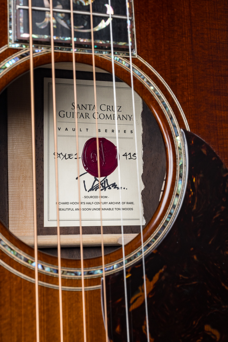 This Style 1 ‘Vault’ 45-style build is the combination of the best of the best from Richard Hoover and staff at the Santa Cruz Guitar Company. A guitar with a story and history? You bet. 50 years in the making, The Style 1-45 Vault Guitar utilizes their Master grade Private Stock woods, the pinnacle of tonewoods that made their way to Richard, the founder of SCGC. Hand picked and stored in a vault, the Vault Series represents the best of the best from Richard. Literally his legacy in a guitar.