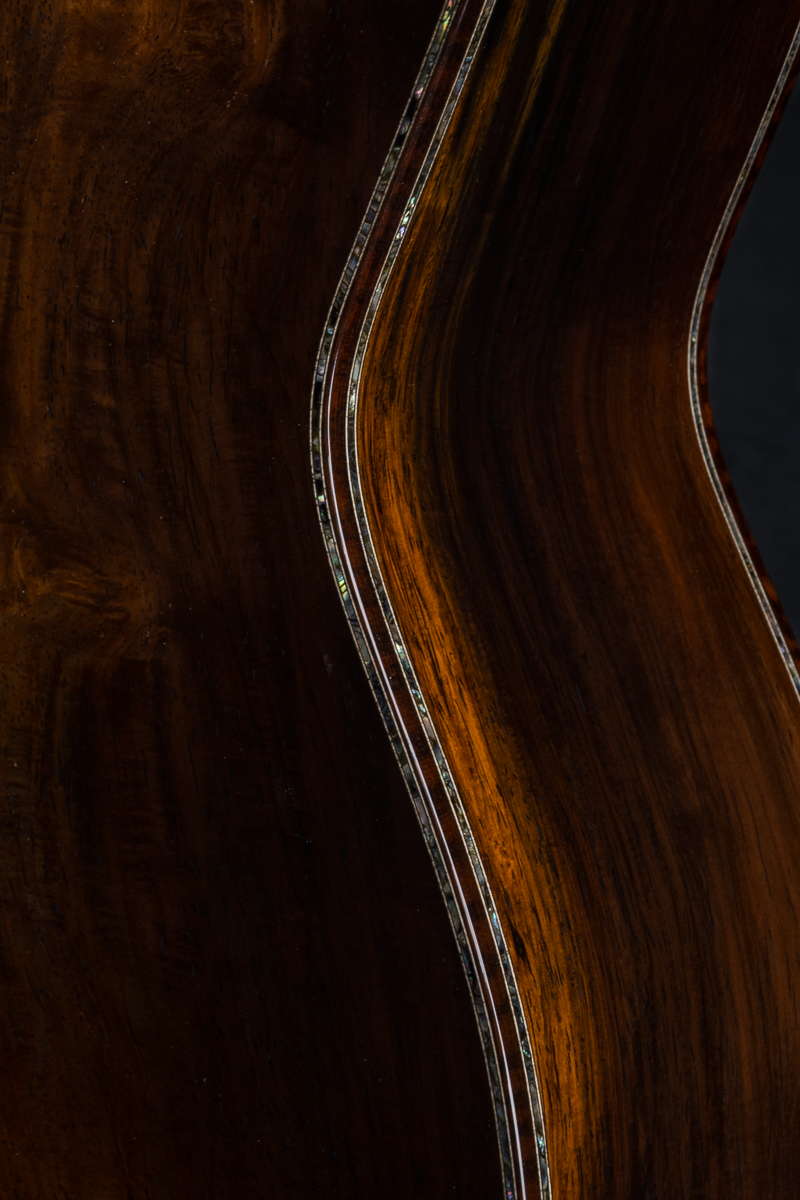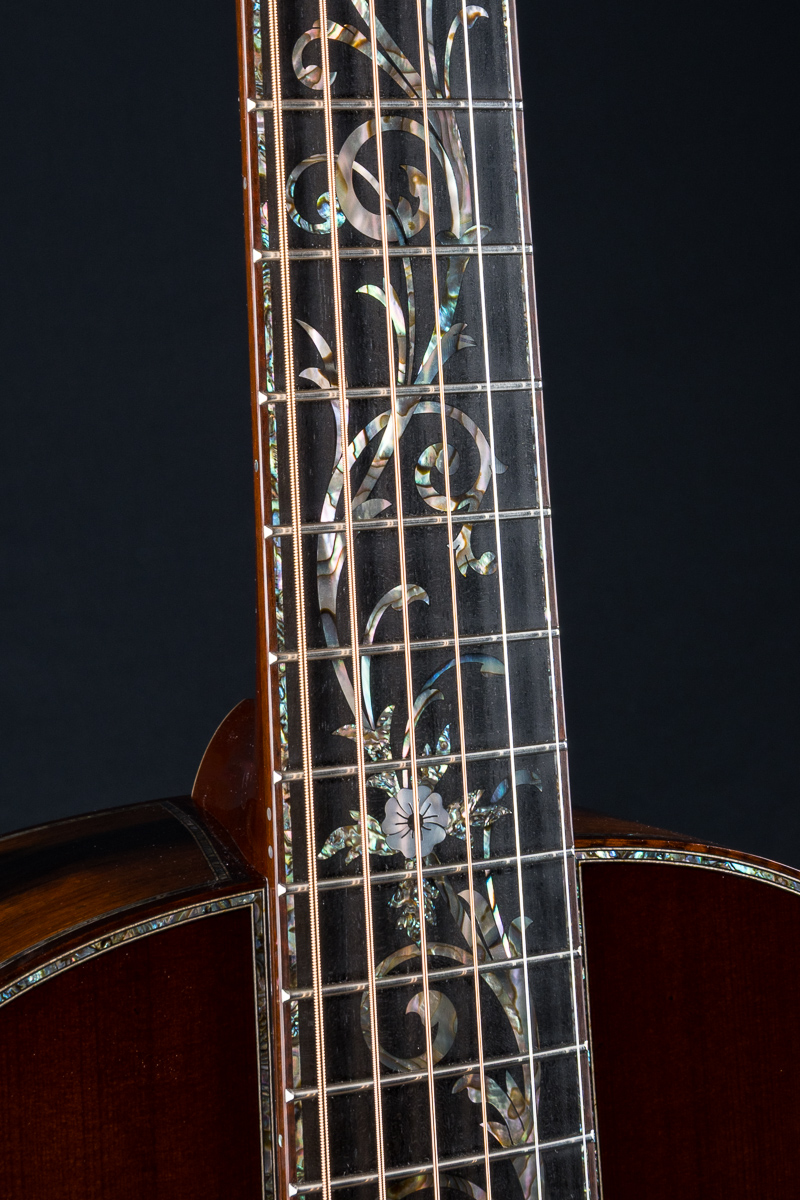 • Abalone Pearl 45-style top, back, sides, neck heel and wedge purfling